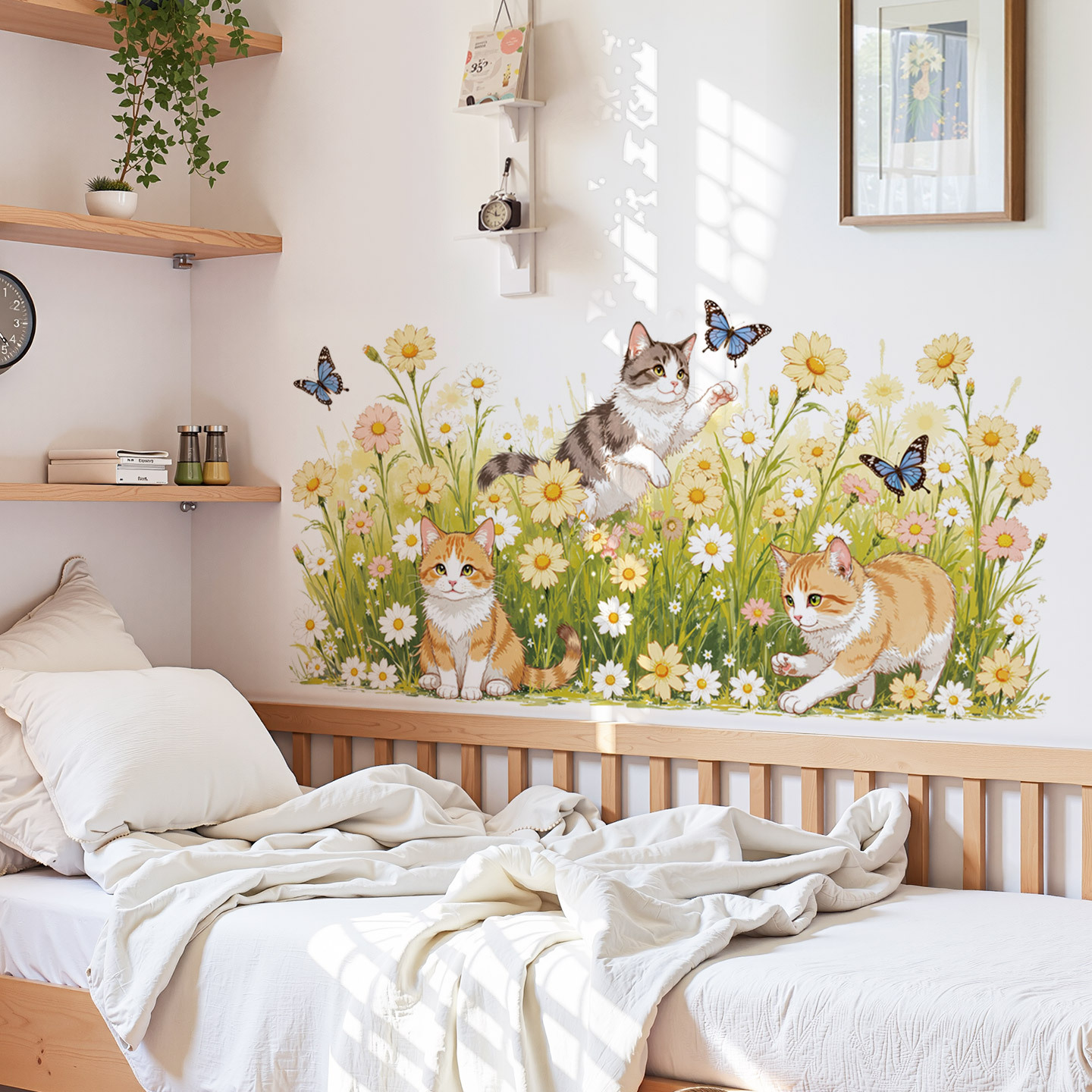 花猫蝶背景ステッカー子供部屋草新鮮な壁ステッカー浴室ガラスドアと窓装飾壁ステッカー