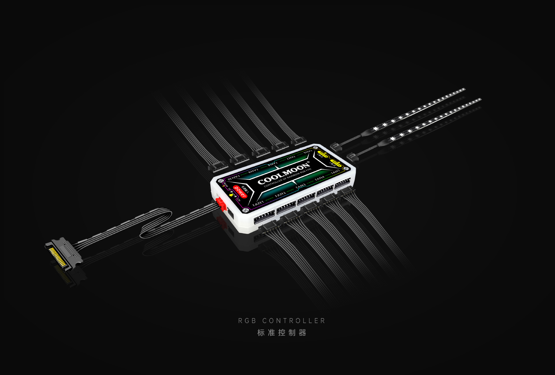 COOLMOON クールムーン 小型6Pケースファンコントローラー 発光カラフル変化ファン集線器 RGBコントローラー
