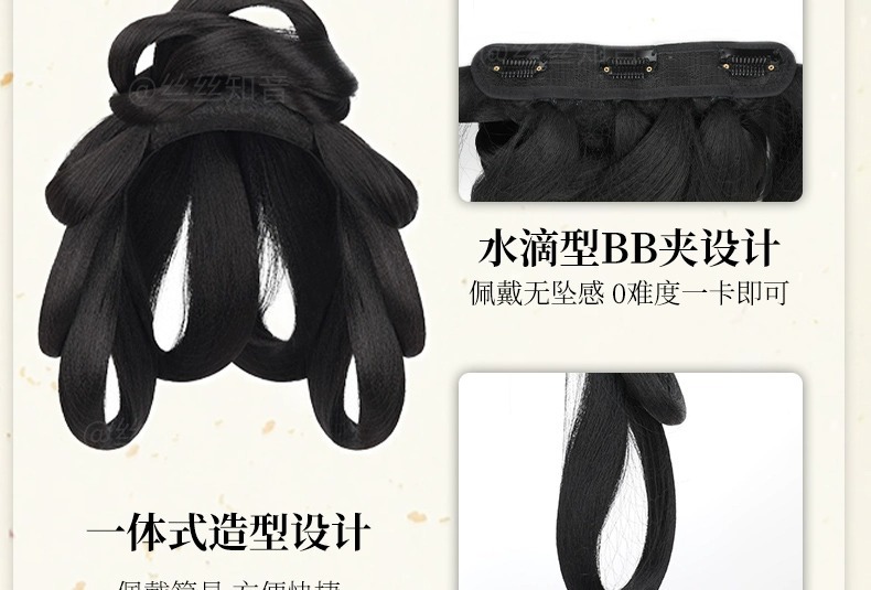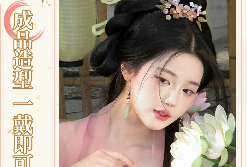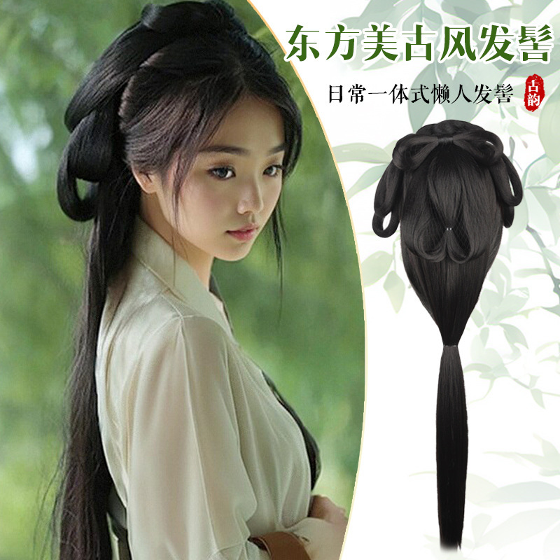 漢服用一体型かつら、簡単な髪型、人工毛、古代風かつら、古装スタイル、唐時代の頭飾り