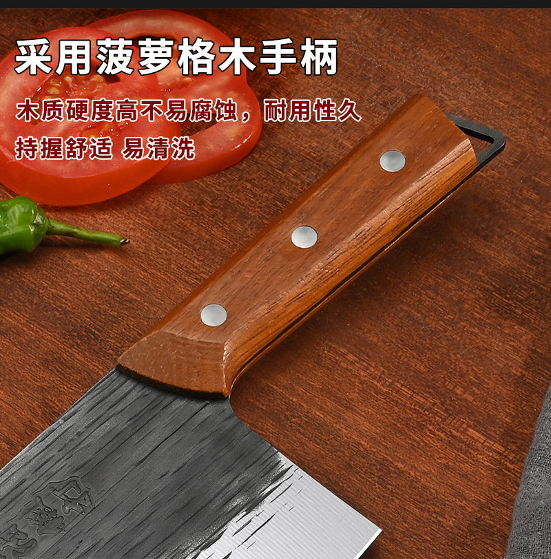 跑江湖菜刀实木不锈钢切片刀锋利厨房鱼生刀专业斩鸡鸭鹅骨斩切刀