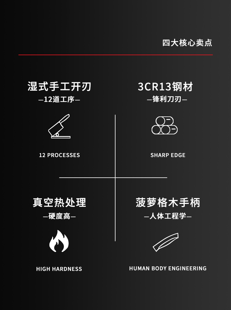 古法鍛打ハンマー紋切包丁パイナップル格木の取っ手が鋭利で包丁を切ります。