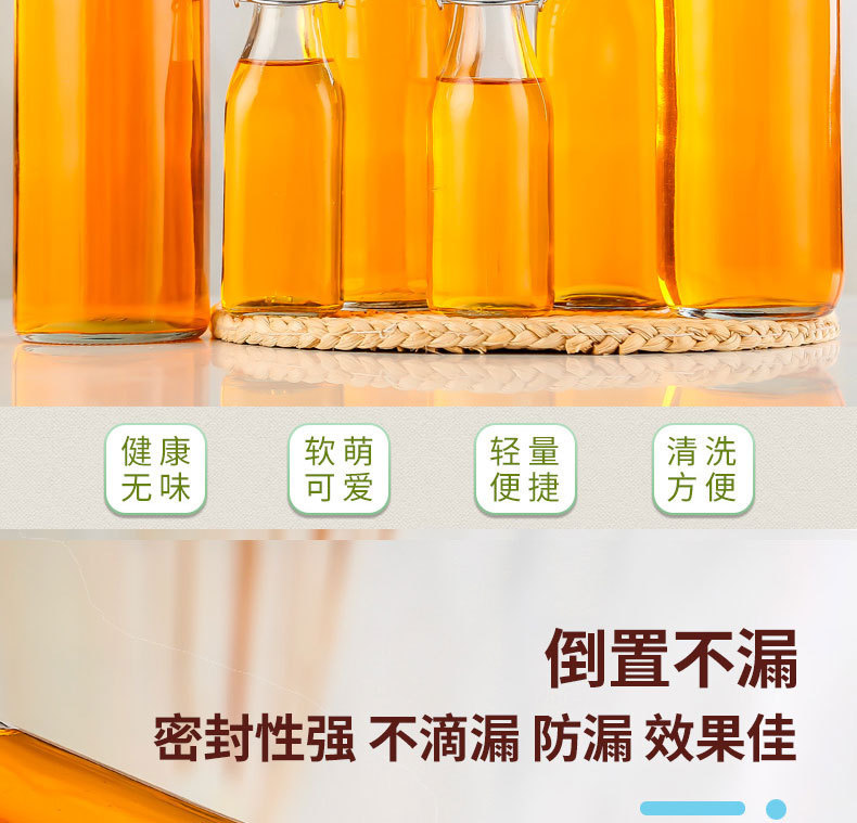 密封ガラス瓶、丸型ハニーボトル、ピクルスチリソースボトル、高蓋ジャム詰め替え瓶、フルーツガラス保存瓶