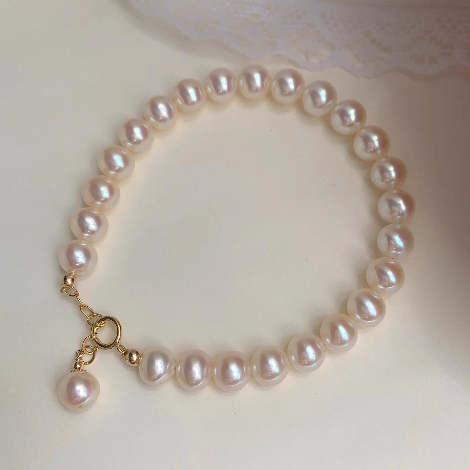 6-7mm近正圆天然淡水珍珠手链铜镀18k金轻奢简约百搭2025新款爆款