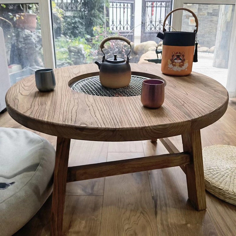 寂風囲炉煮茶卓老楡木焼きテーブル冬の実木屋外暖房テーブル囲炉テーブルカスタマイズ