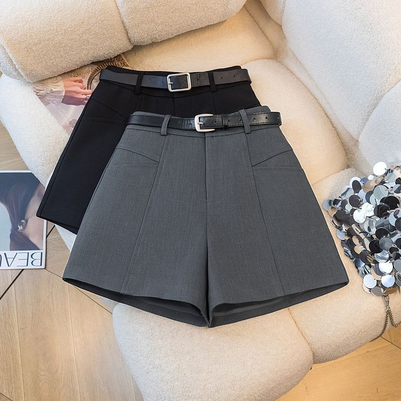 ハイウエストの黒いスーツの半ズボンの女性2025の新型の春夏の外は灰色のA字の広い足を着て痩せているカジュアルなズボンのホットパンツを現します。