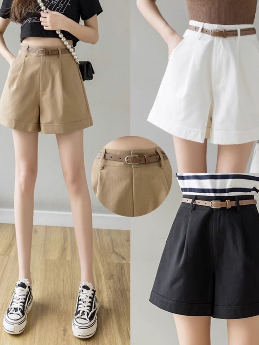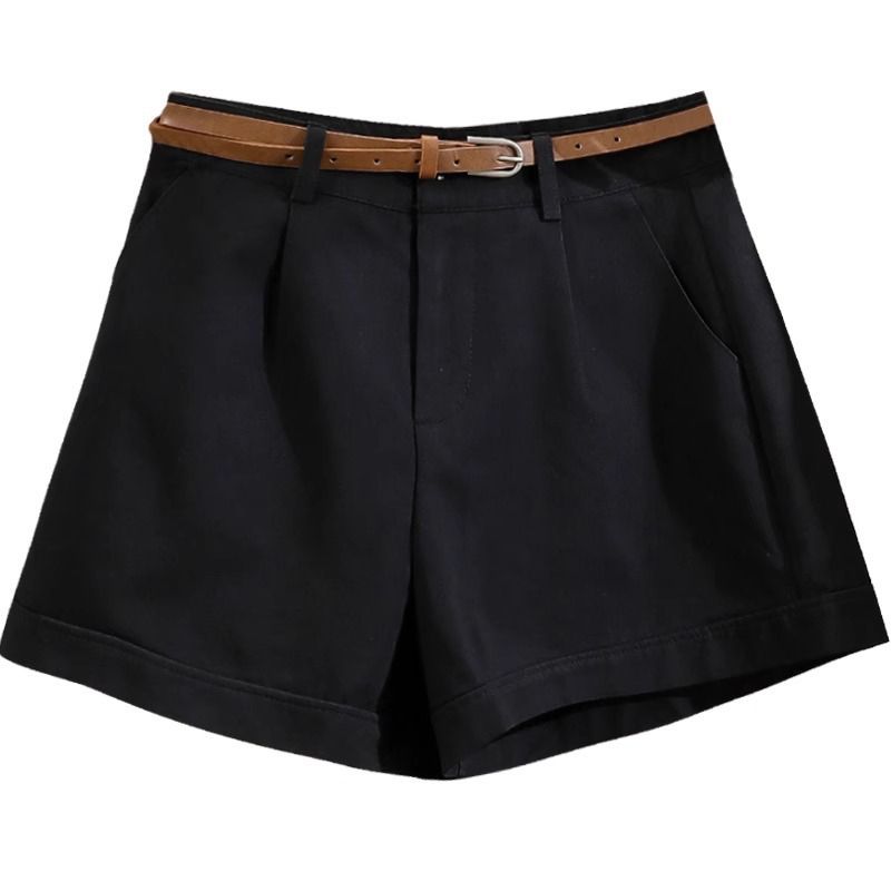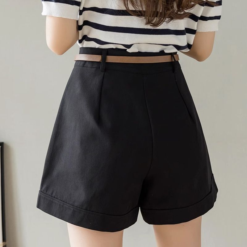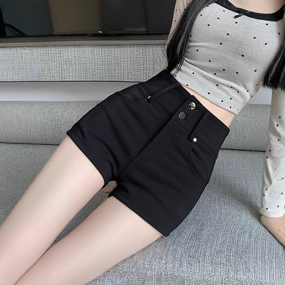 黒いスーツの半ズボンの女性の夏の2025新型の外は熱いズボンのギャルを着て腰が高くて痩せています。