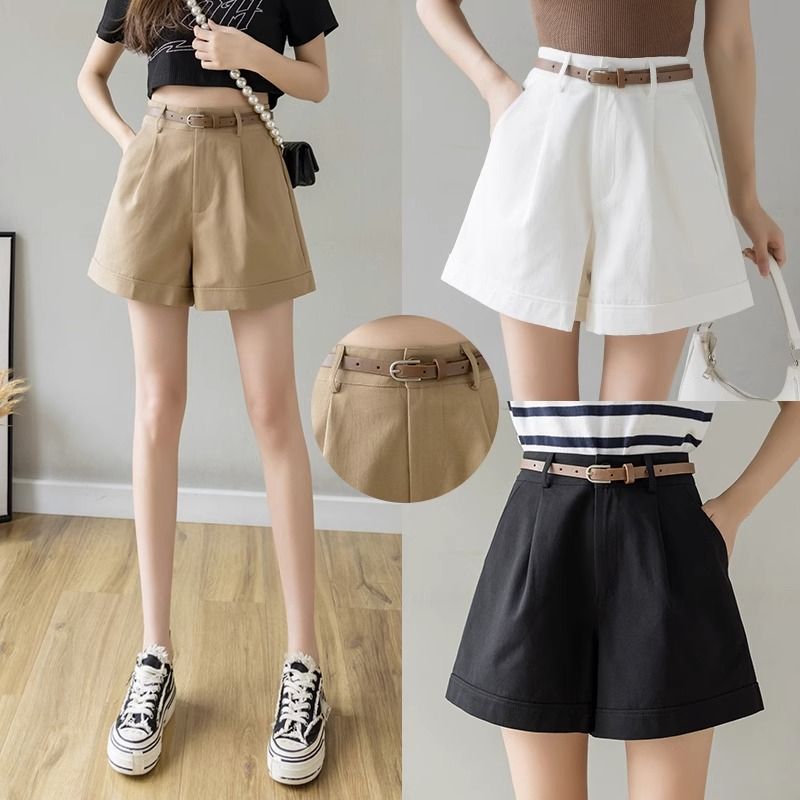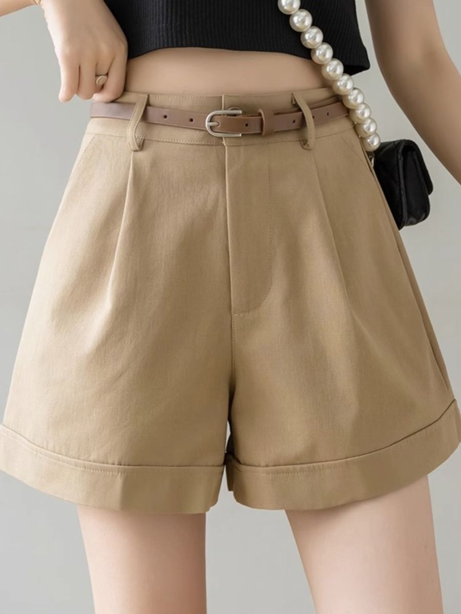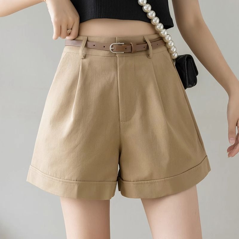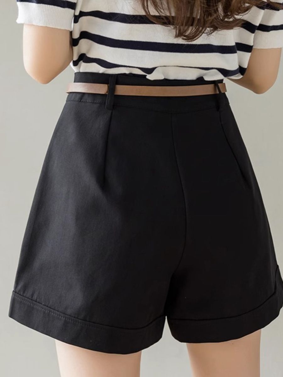 黒いスーツの半ズボンの女性の夏の2025新型の外は熱いズボンのギャルを着て腰が高くて痩せています。
