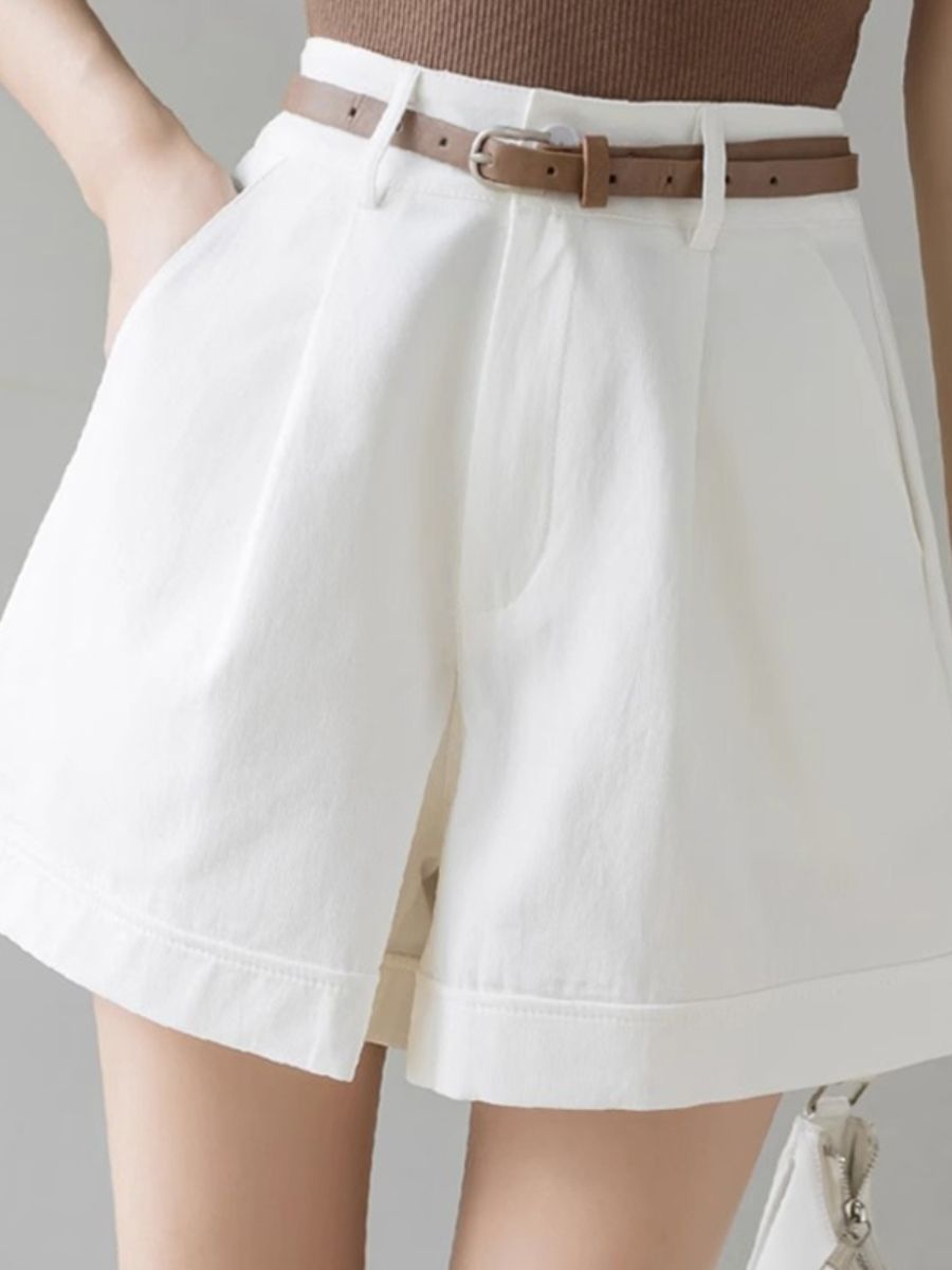 高腰の白い半ズボンの女性の春夏2025新型のスーツのワイドパンツはゆったりしています。