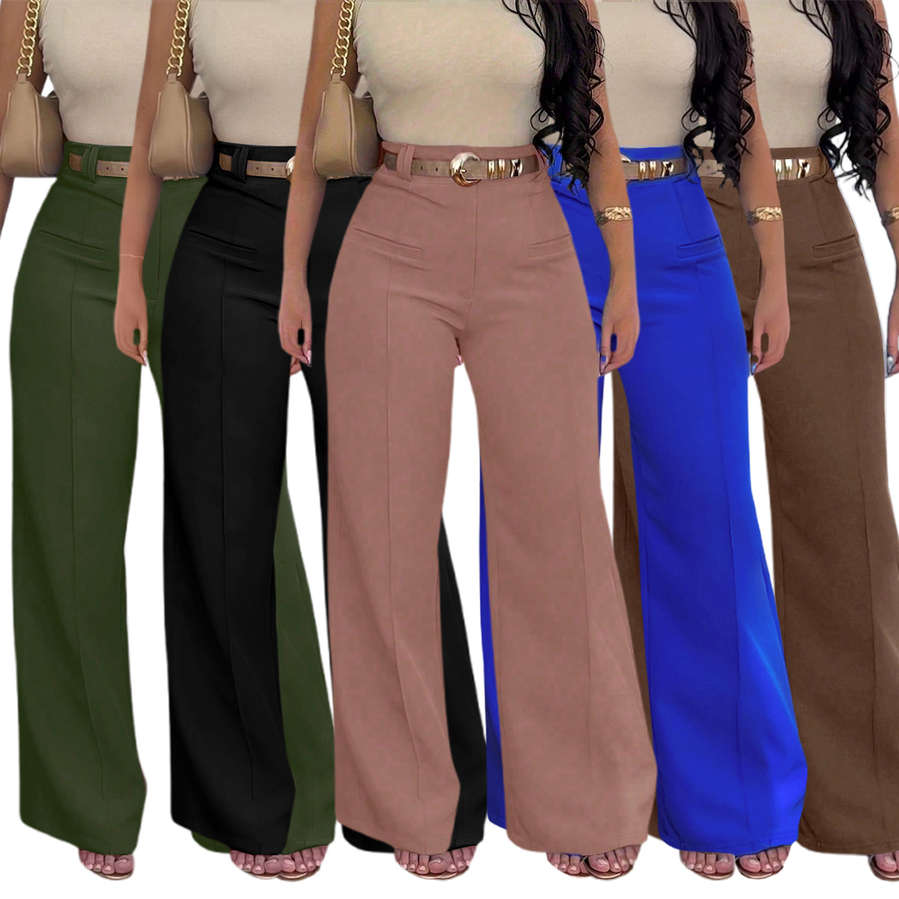 S391258 跨境外贸批发女士休闲时尚中高腰阔腿裤 显瘦百搭宽松长