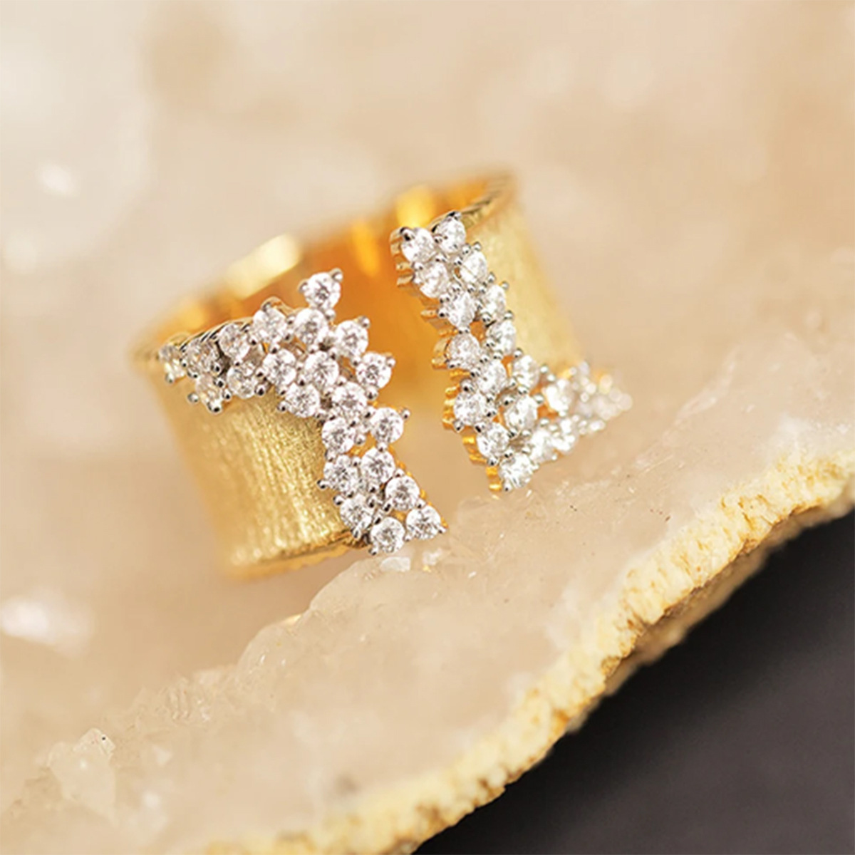 国境を越えて人気のある手飾り豪華なジルコンメッキ金色男女共通指輪結婚式パーティー指輪卸売り