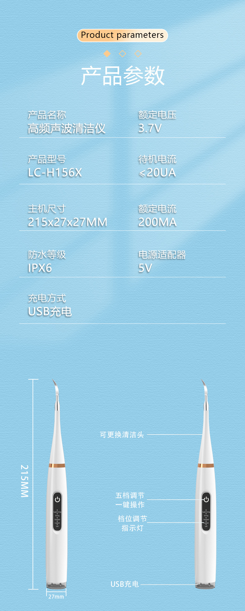 跨境5档电动牙刷多功能声波洁牙器清洁牙齿牙菌斑结石刷牙洗牙机