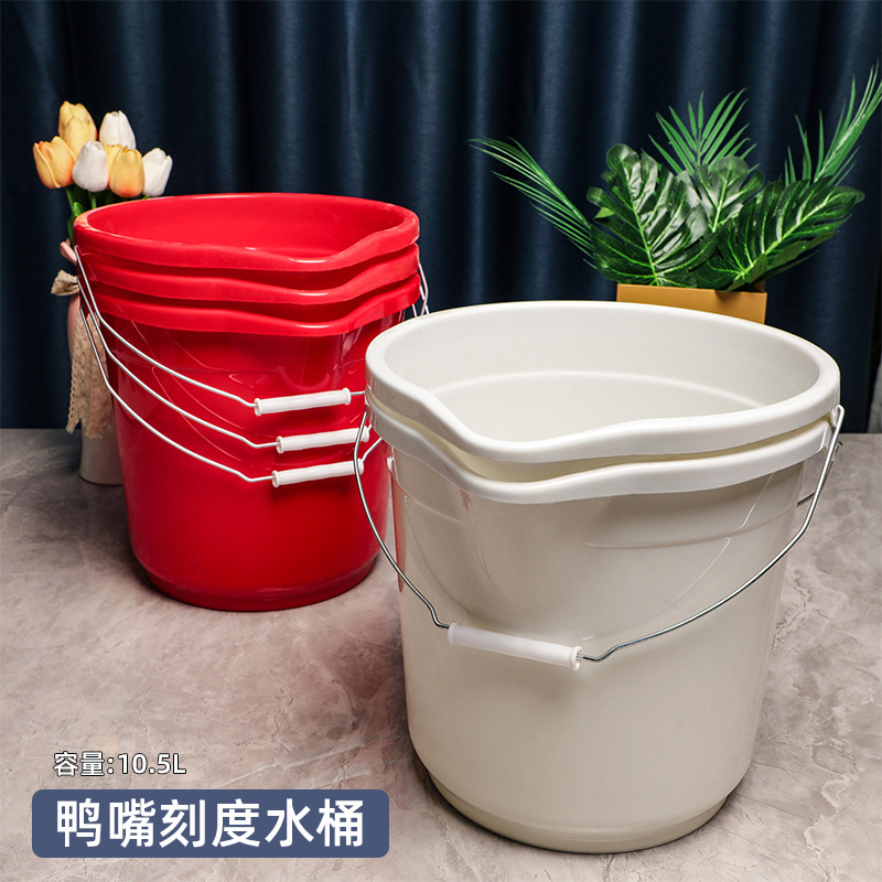 アヒルの口の目盛りの赤い桶の大きいサイズはプラスチックのバケツを持って洗濯します。