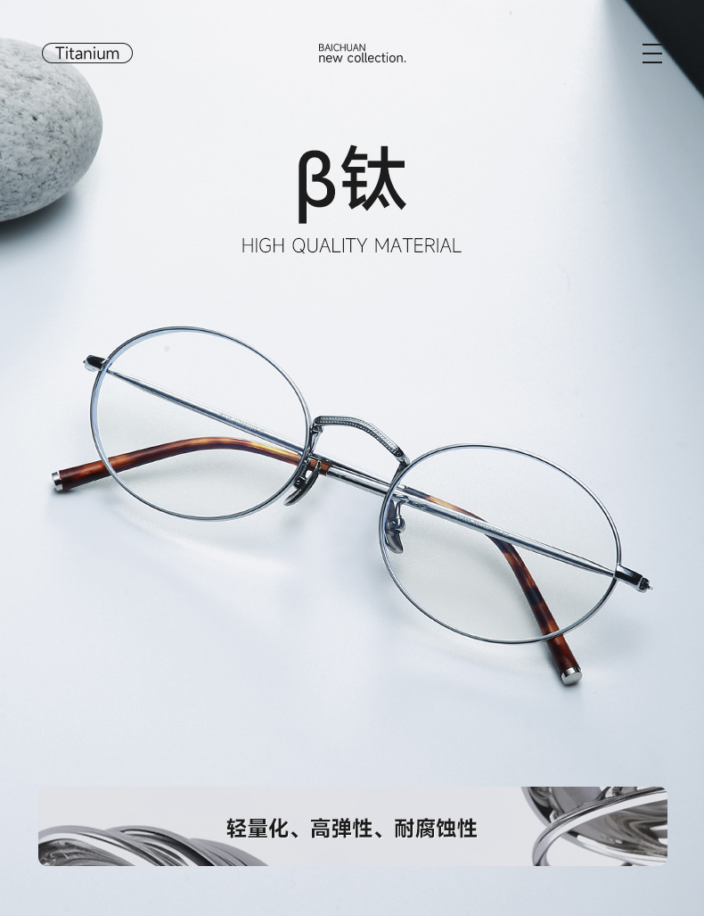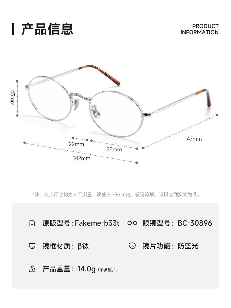 Fakem秋冬韓系文芸30896超軽量 β チタン近視円型光学鏡b 33t楕円鏡枠