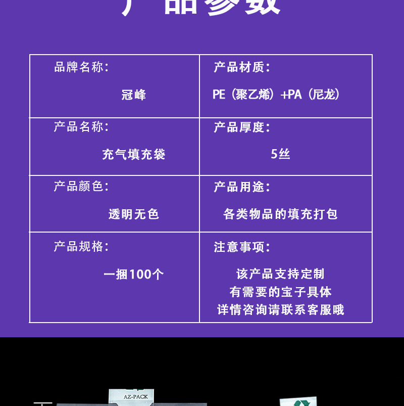 冠峰気柱袋気柱巻き空気充填気柱コイル包装防震緩衝宅配便包装気泡柱卸売り