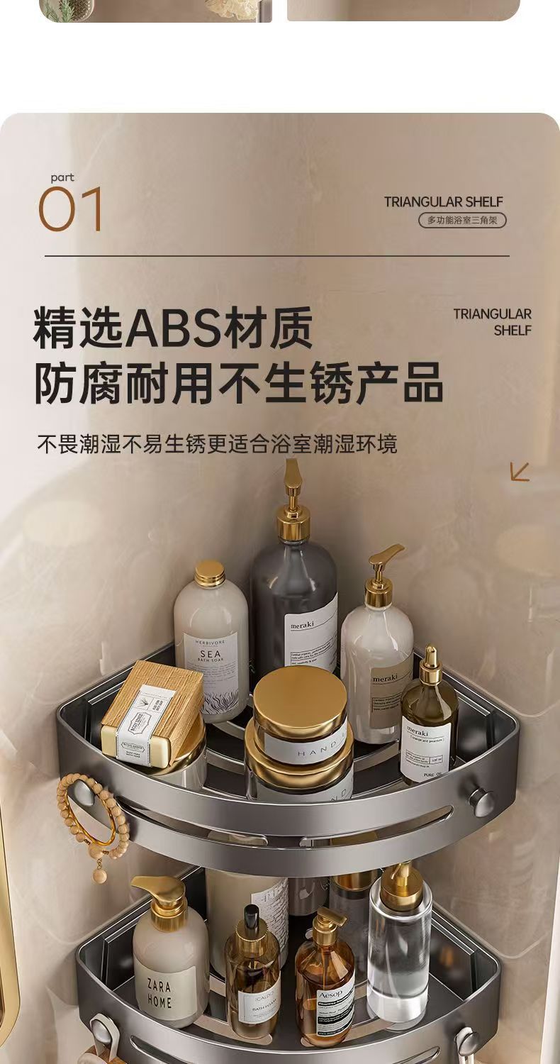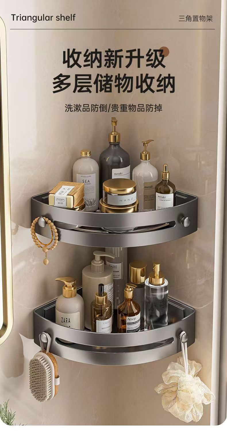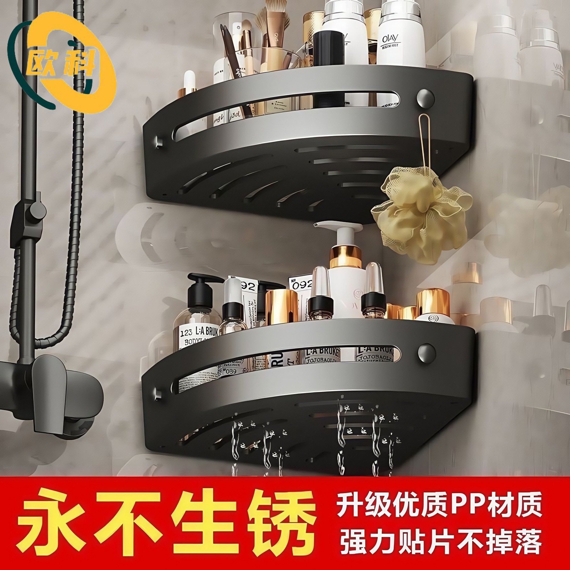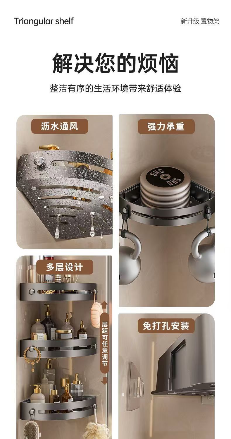 免打孔 浴室 转角 置物架 厨卫 收纳 收纳架 墙角架 墙角 壁挂式 洗手间 三角篮 层架 无痕贴 卫生间