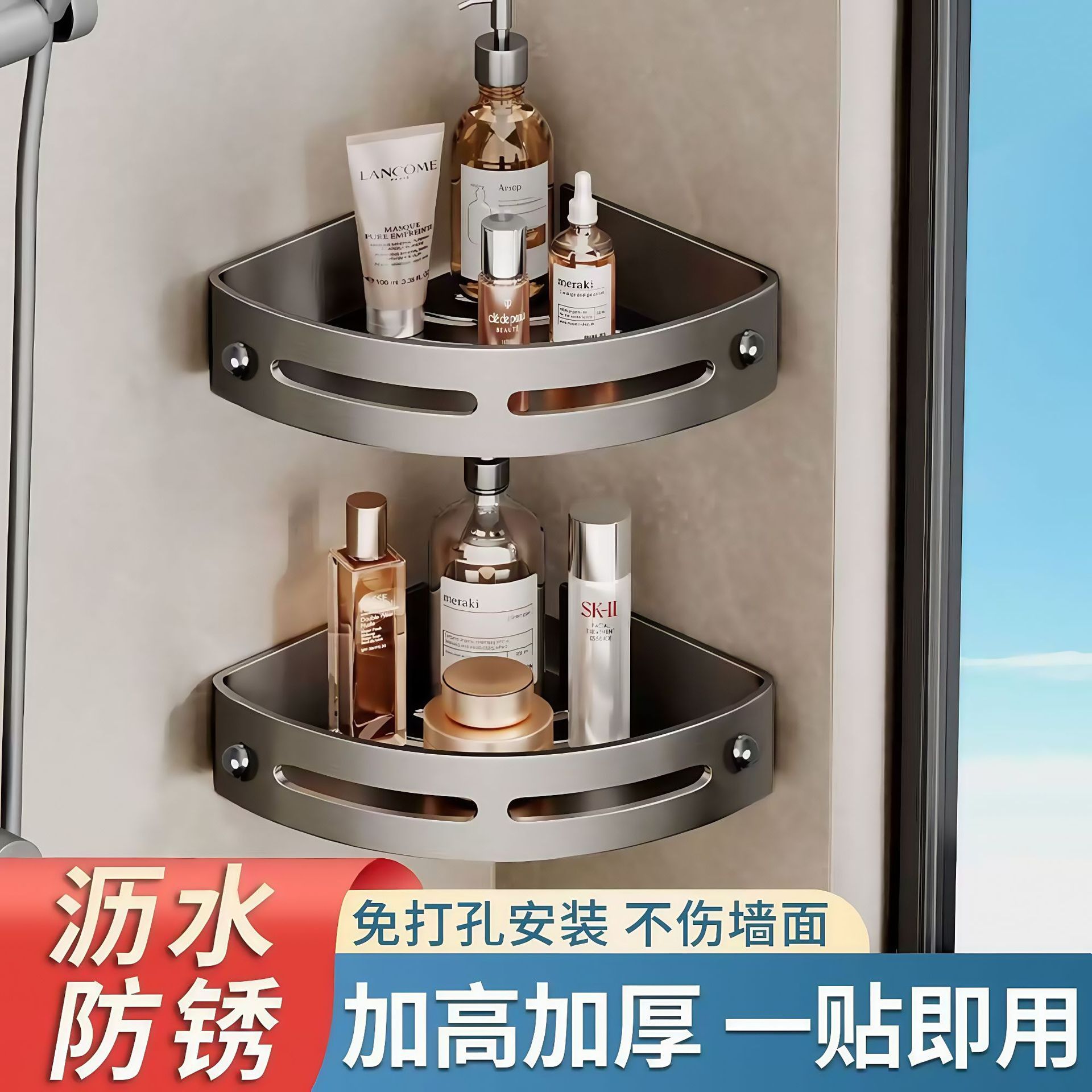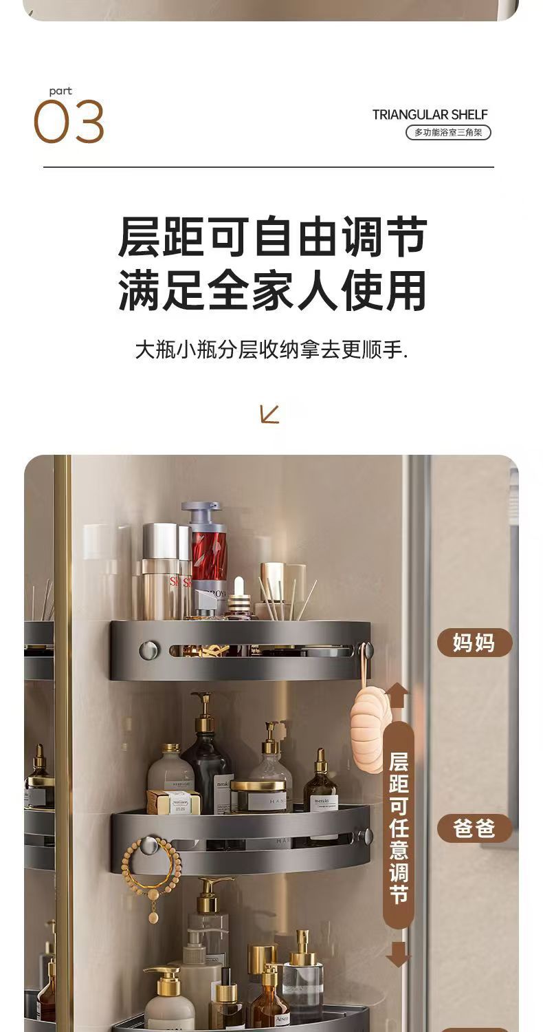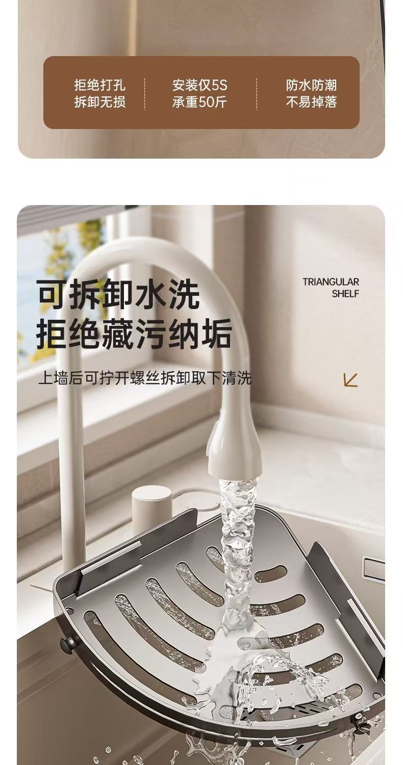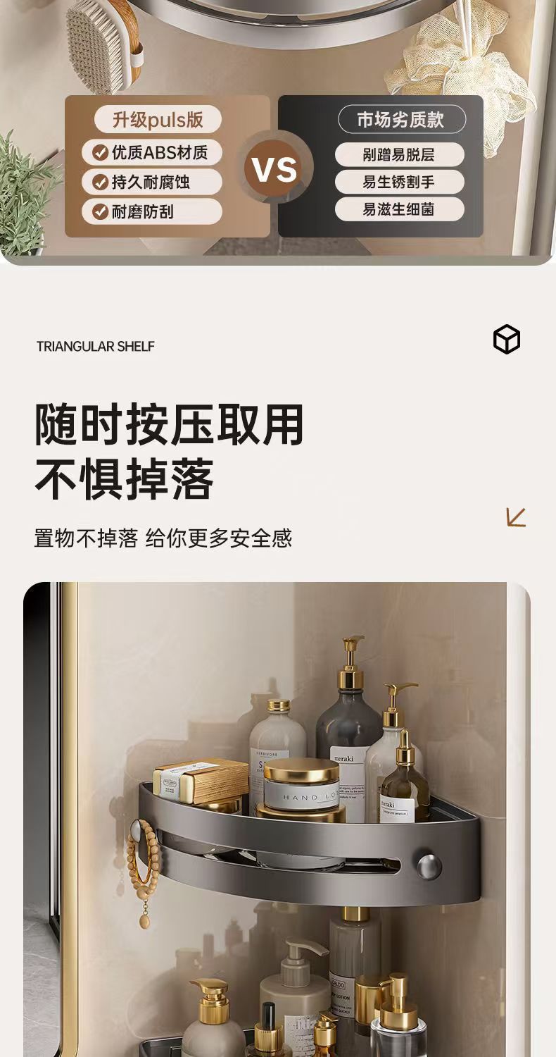 免打孔 浴室 转角 置物架 厨卫 收纳 收纳架 墙角架 墙角 壁挂式 洗手间 三角篮 层架 无痕贴 卫生间