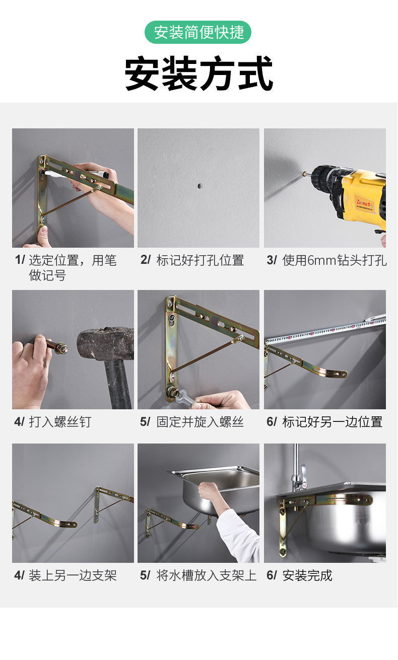 シンクブラケット簡易洗面台ベランダ洗面器鉄色亜鉛工事壁掛け三角曲げ型イベントブラケット