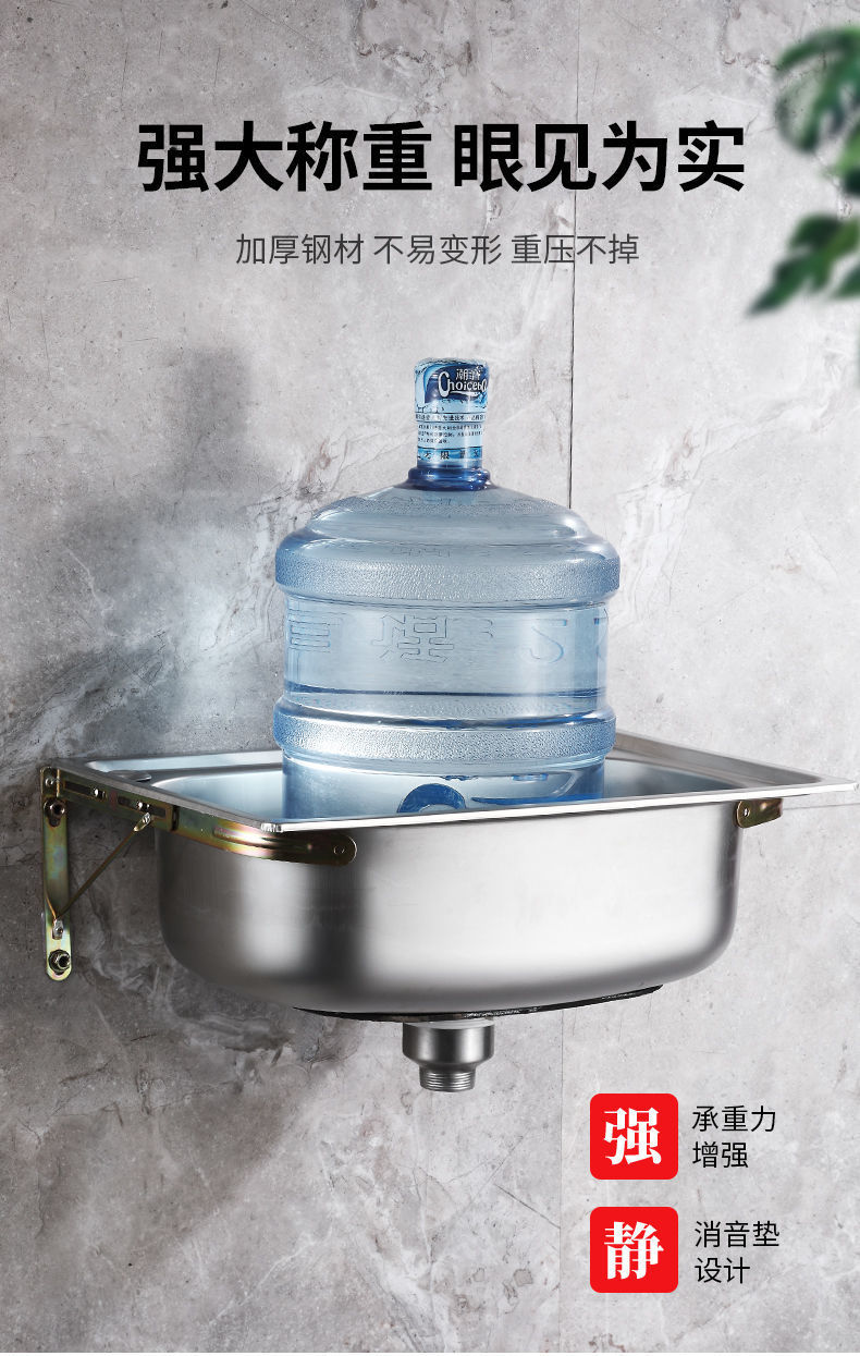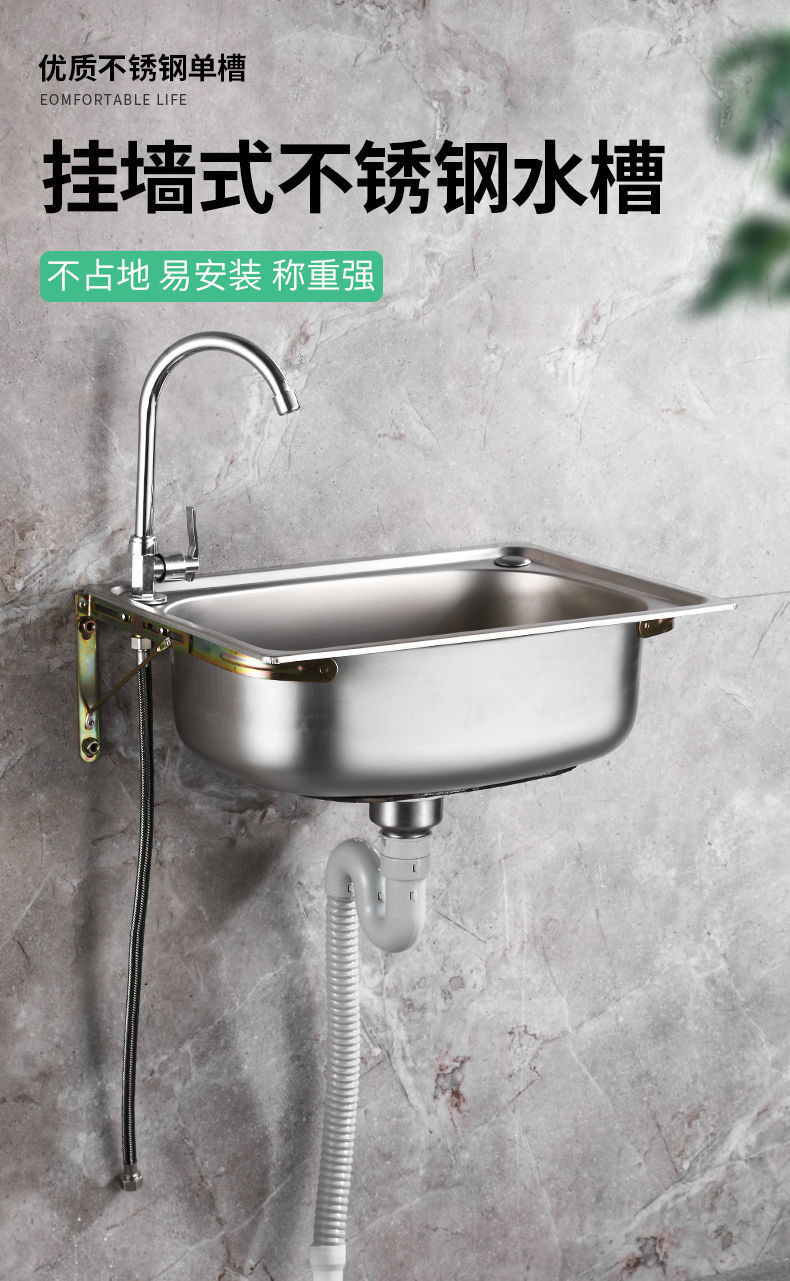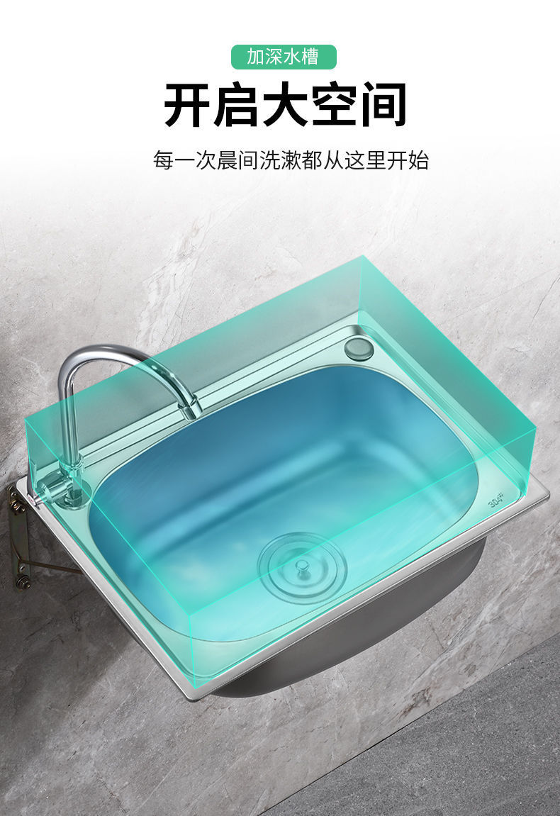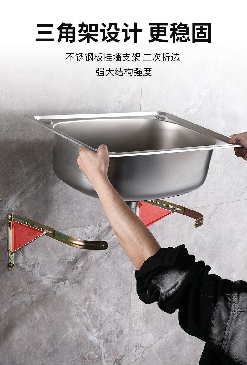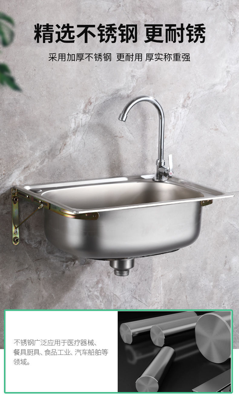 *加厚单304不锈钢带支架挂墙水 厨房洗菜盆洗碗池阳台洗手盆