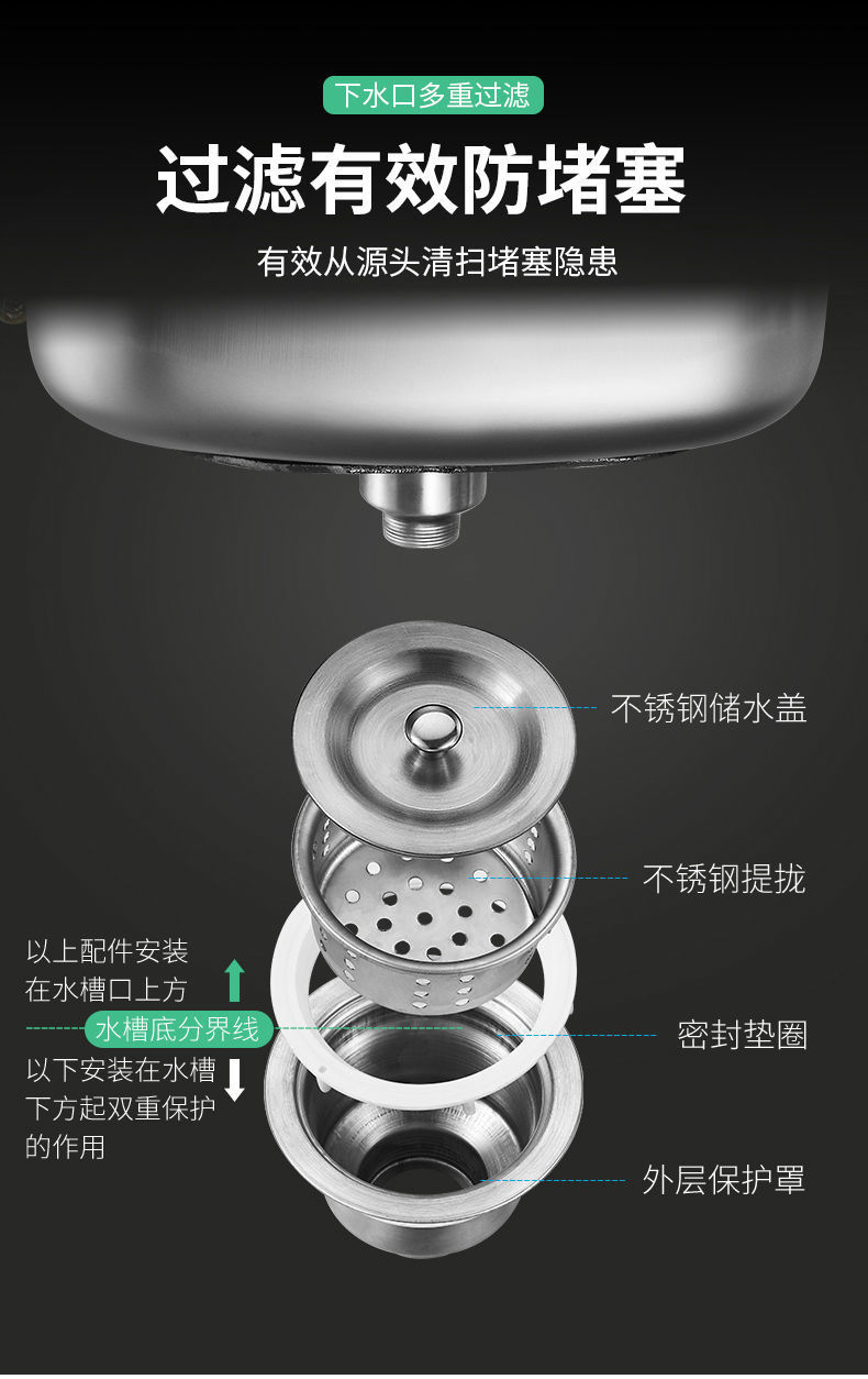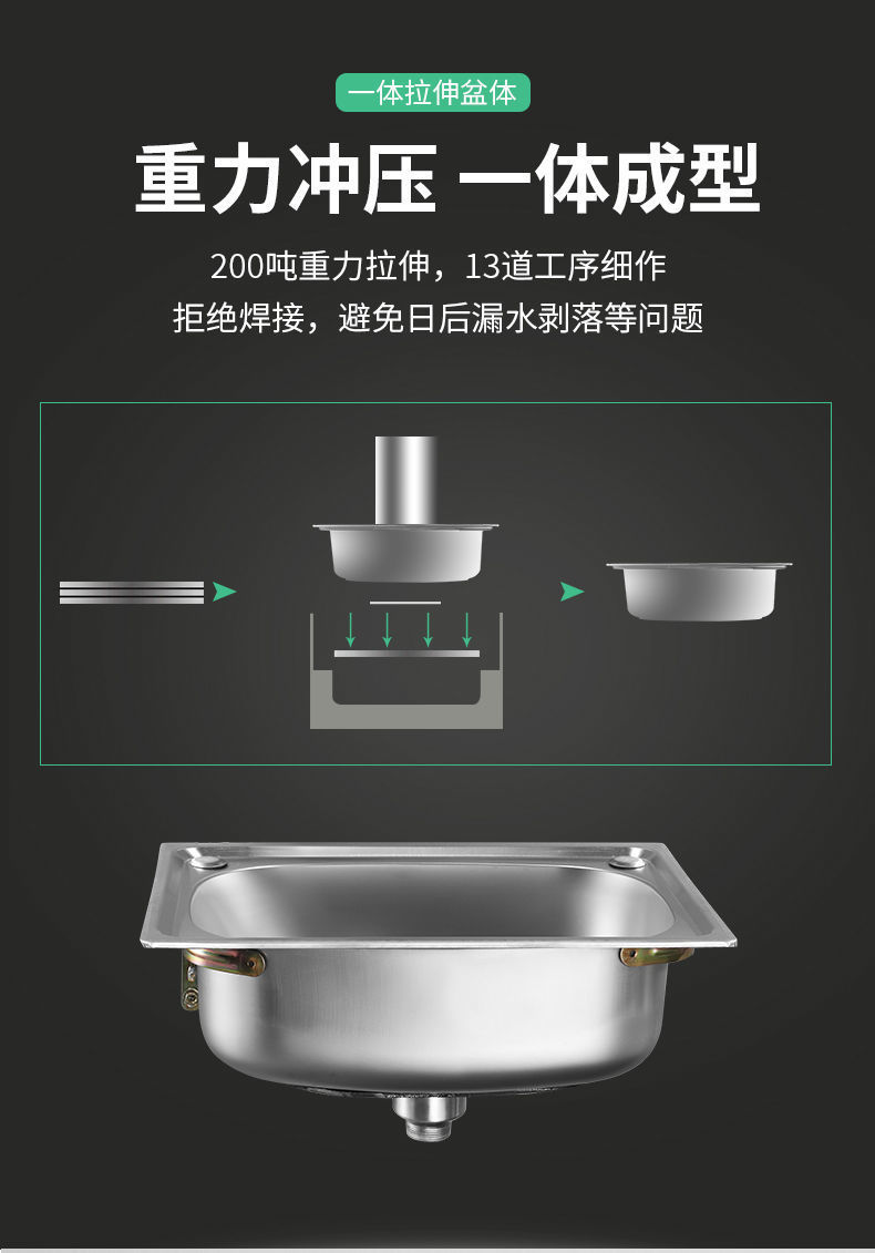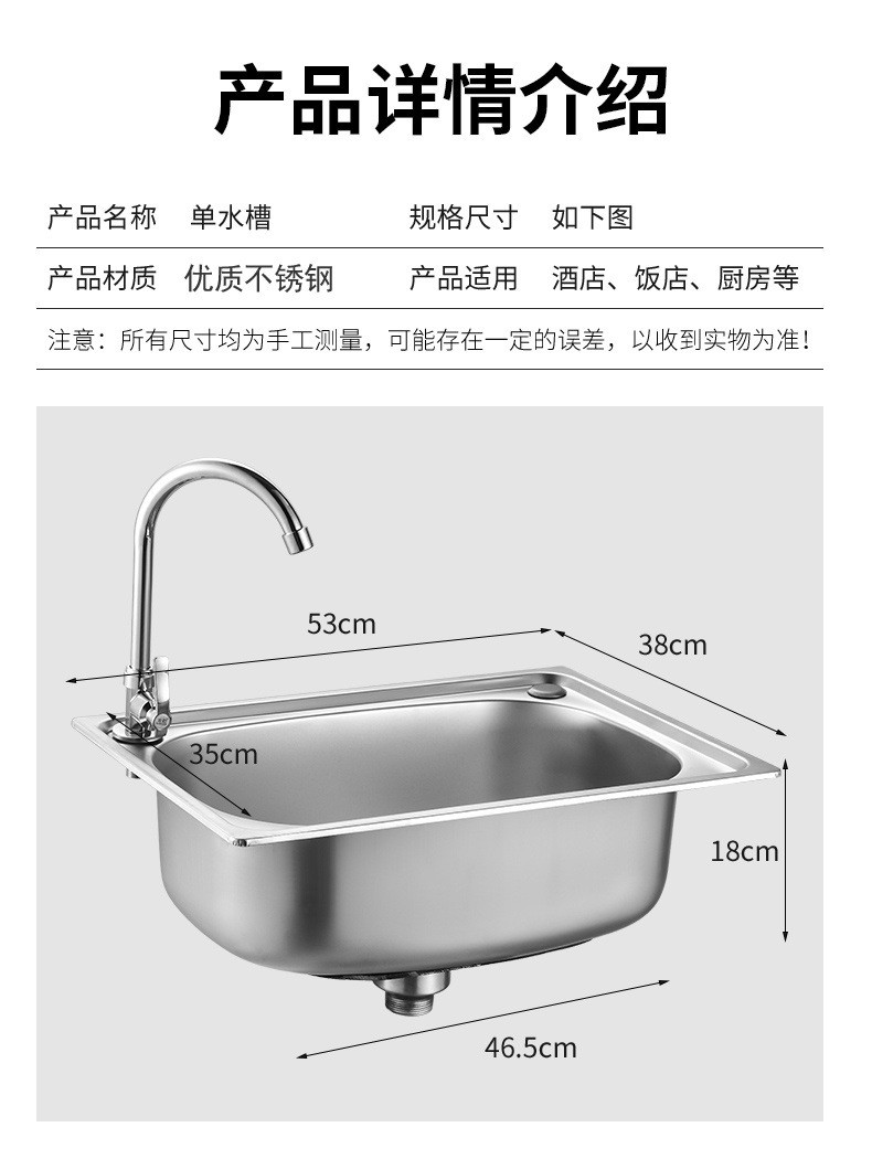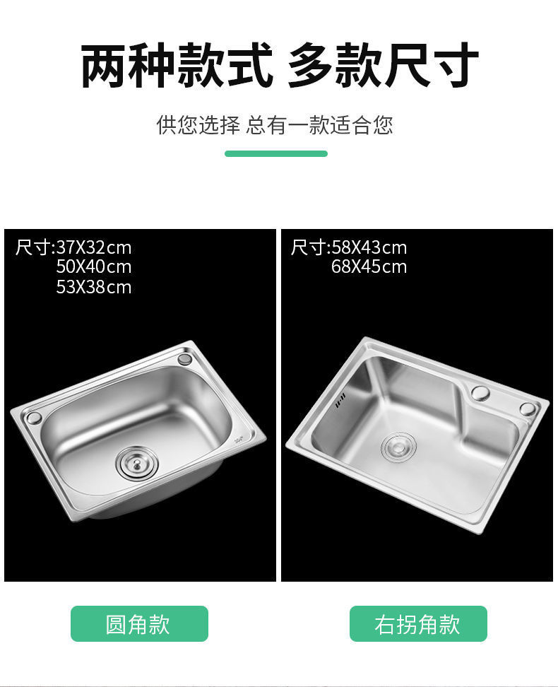 洗菜盆单槽304不锈钢水槽厨房加厚洗碗池水池家用阳台大小洗手盆