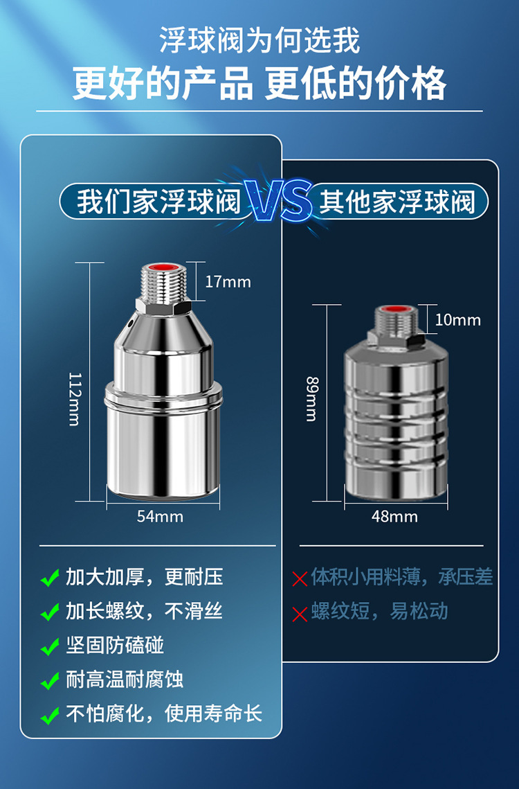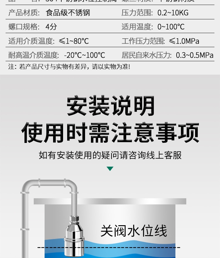 304不锈钢浮球阀水位控制器4分开关全自动补水满止水阀厨房水龙头