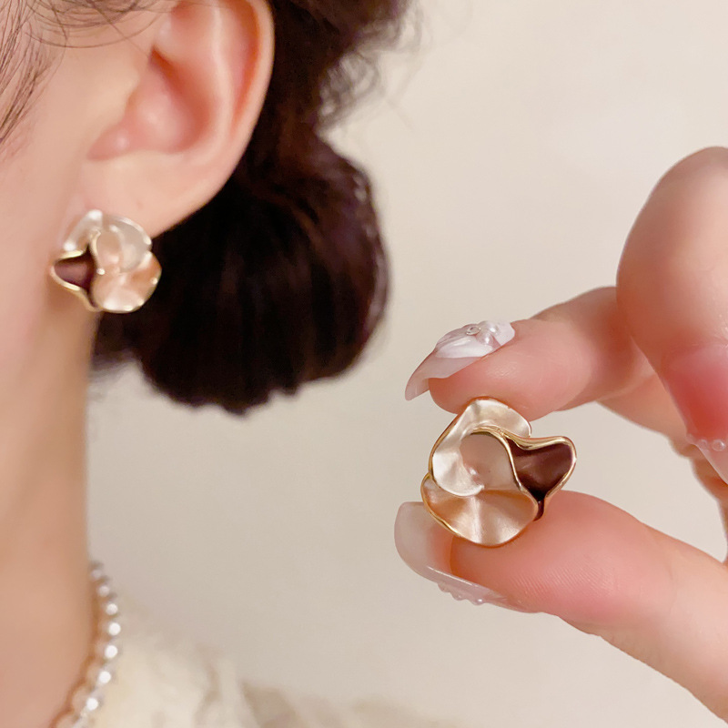 小众复古时尚甜美撞色扭曲花瓣耳钉个性气质简约独特设计感耳环女