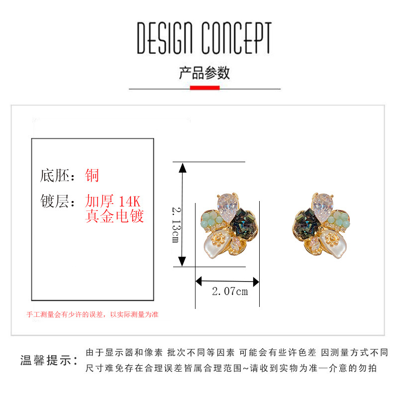 フランスの軽くて豪華なジルコン真珠のツバキの花のピアスの気質のファッションの高級感の甘い百合の銀の針のイヤリングの卸売り