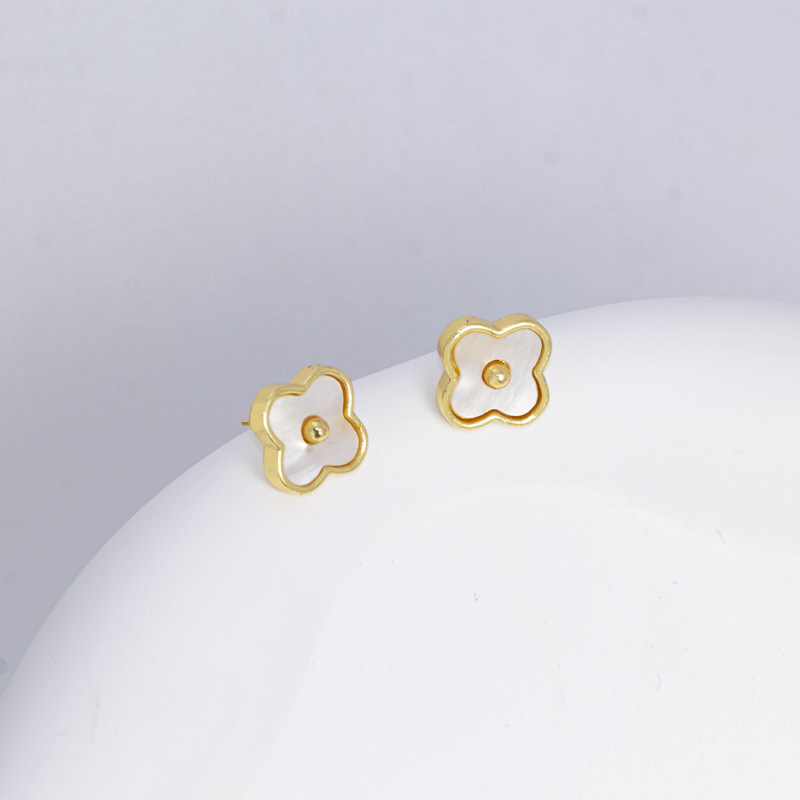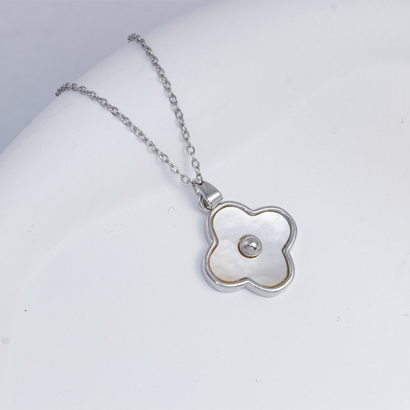 チタン鋼ネックレス レディース 貝殻四つ葉のクローバーペンダント イヤリング 高級感 ライトラグジュアリー ニッチデザイン 鎖骨チェーン イヤリング ジュエリー