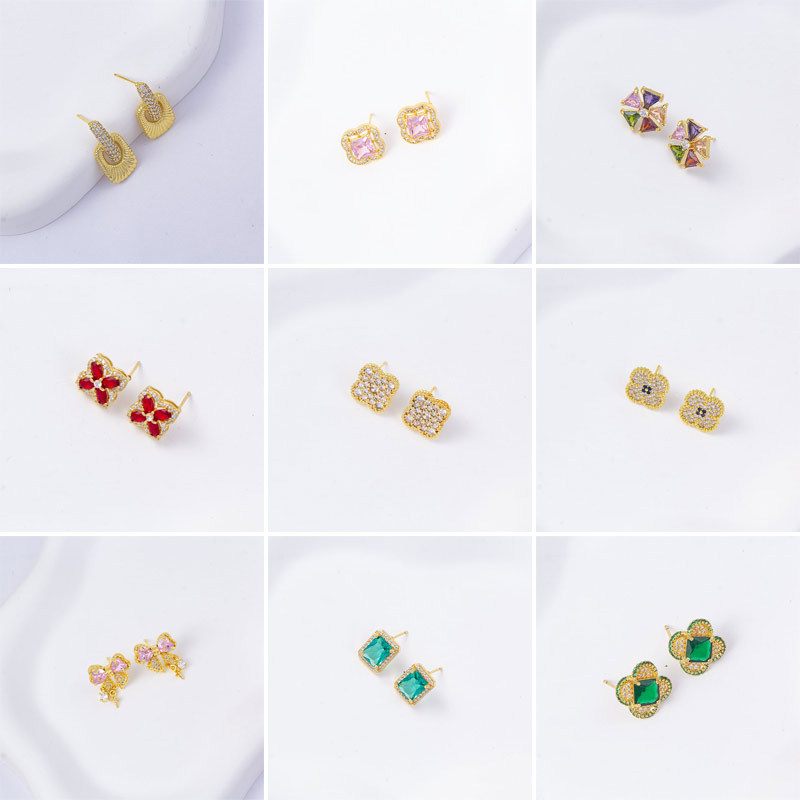 铜镶锆气质钛钢花朵四叶草项链女高级感电镀轻奢耳环吊坠戒指饰品
