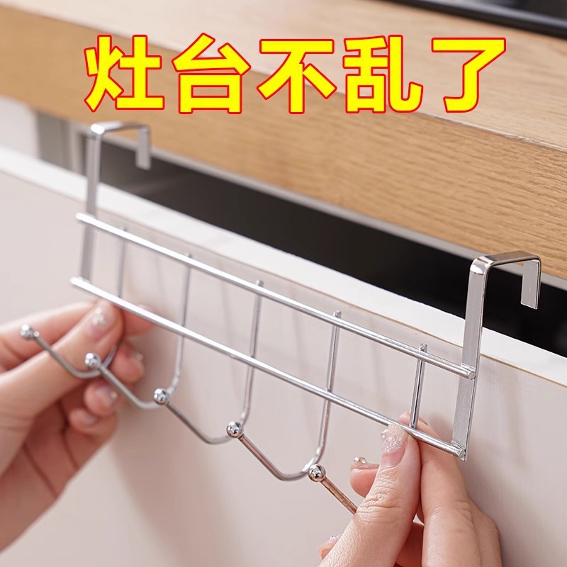 不锈钢橱柜门背5连挂钩置物卡夹钩 厨房免打孔锅铲汤勺收纳沥水架