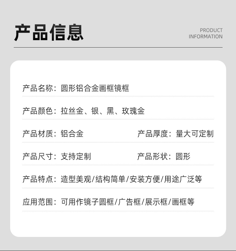 アルミニウム合金製 丸型・角型 メタルフレーム メーカー卸売 電気メッキ モダン シンプル 広告フレーム 装飾額縁 写真フレーム