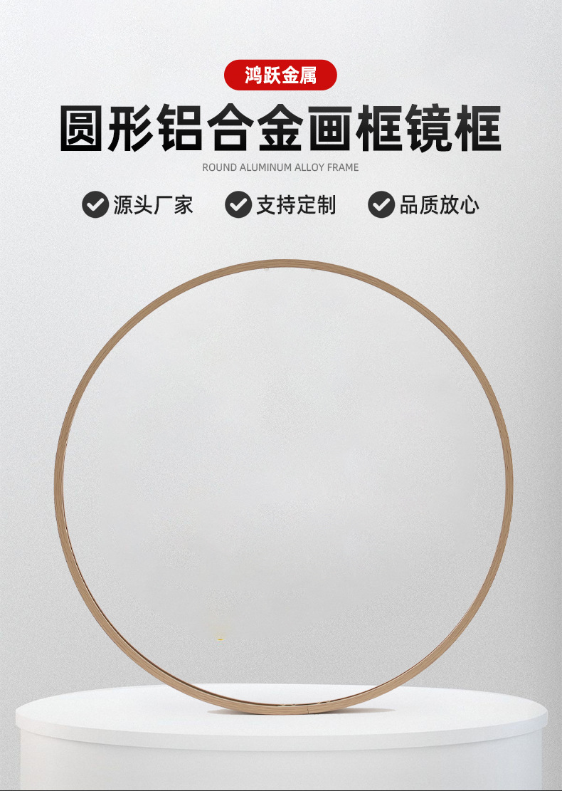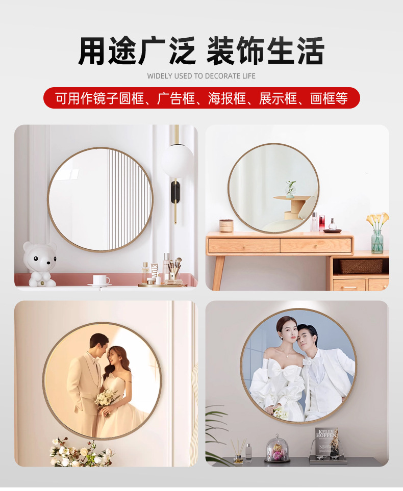 化粧鏡丸掛け鏡アルミ合金円形鏡枠トイレ穴なし卸売り金属伸線アルミ合金枠