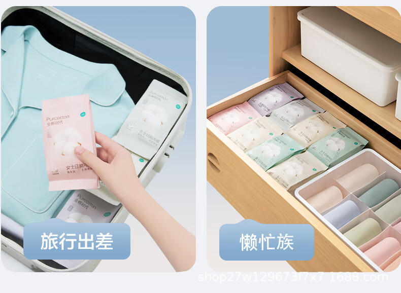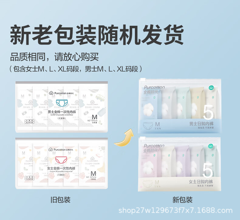 綿時代-男女兼用使い捨て下着 純綿無菌 出張旅行必需品 新旧パッケージ混合