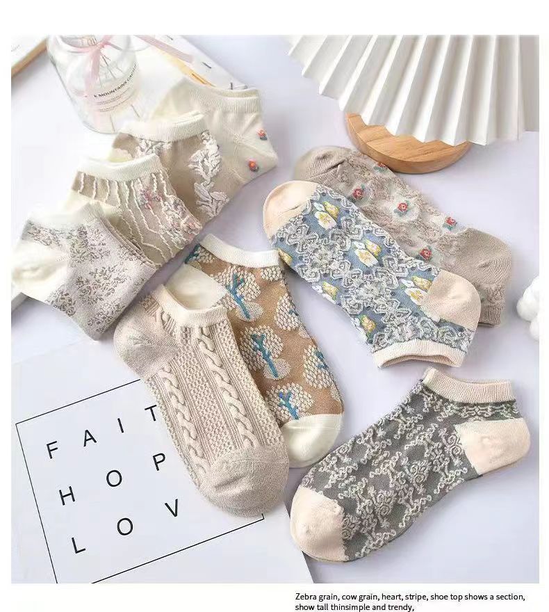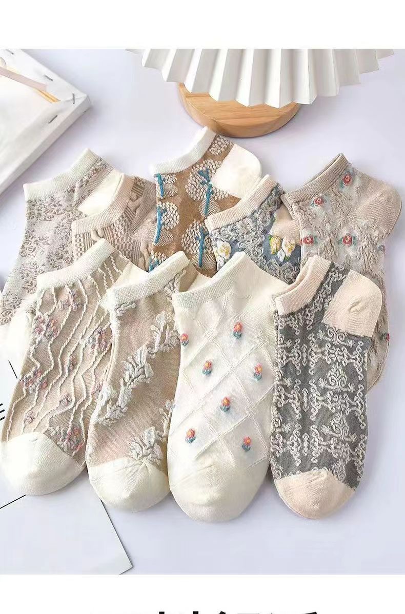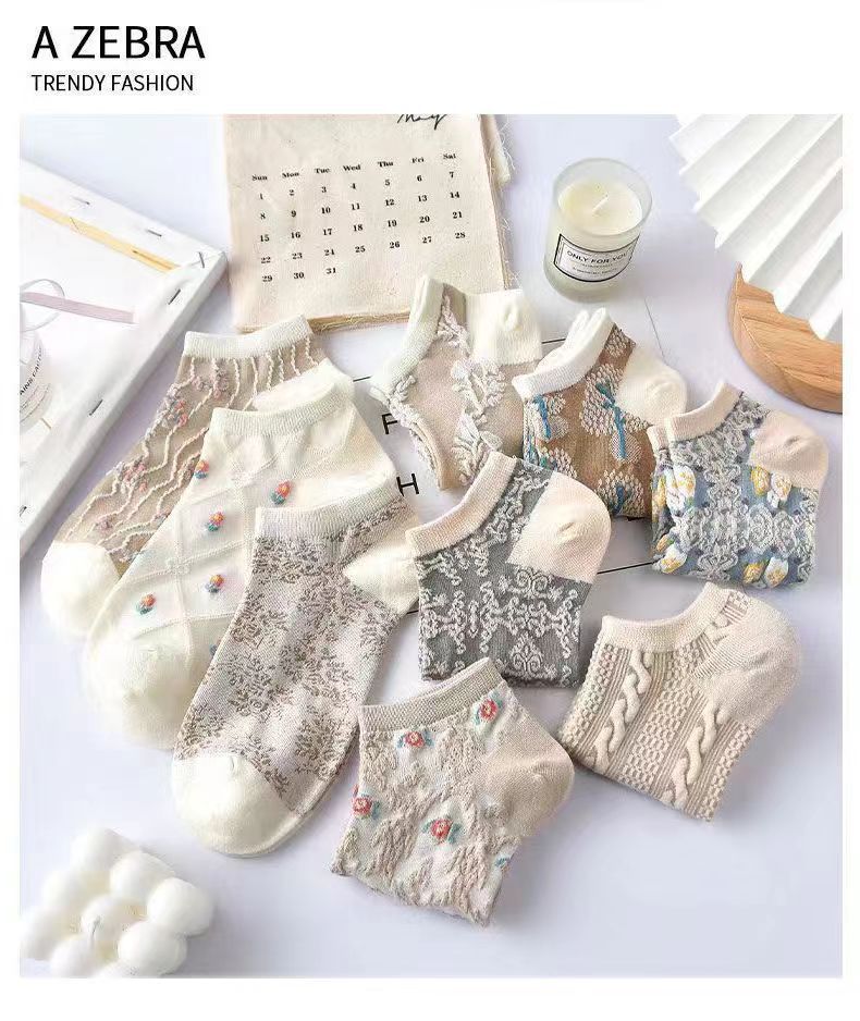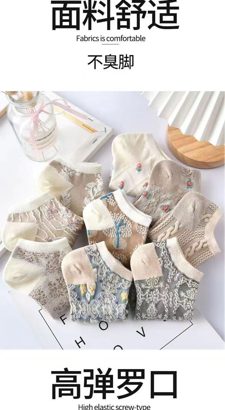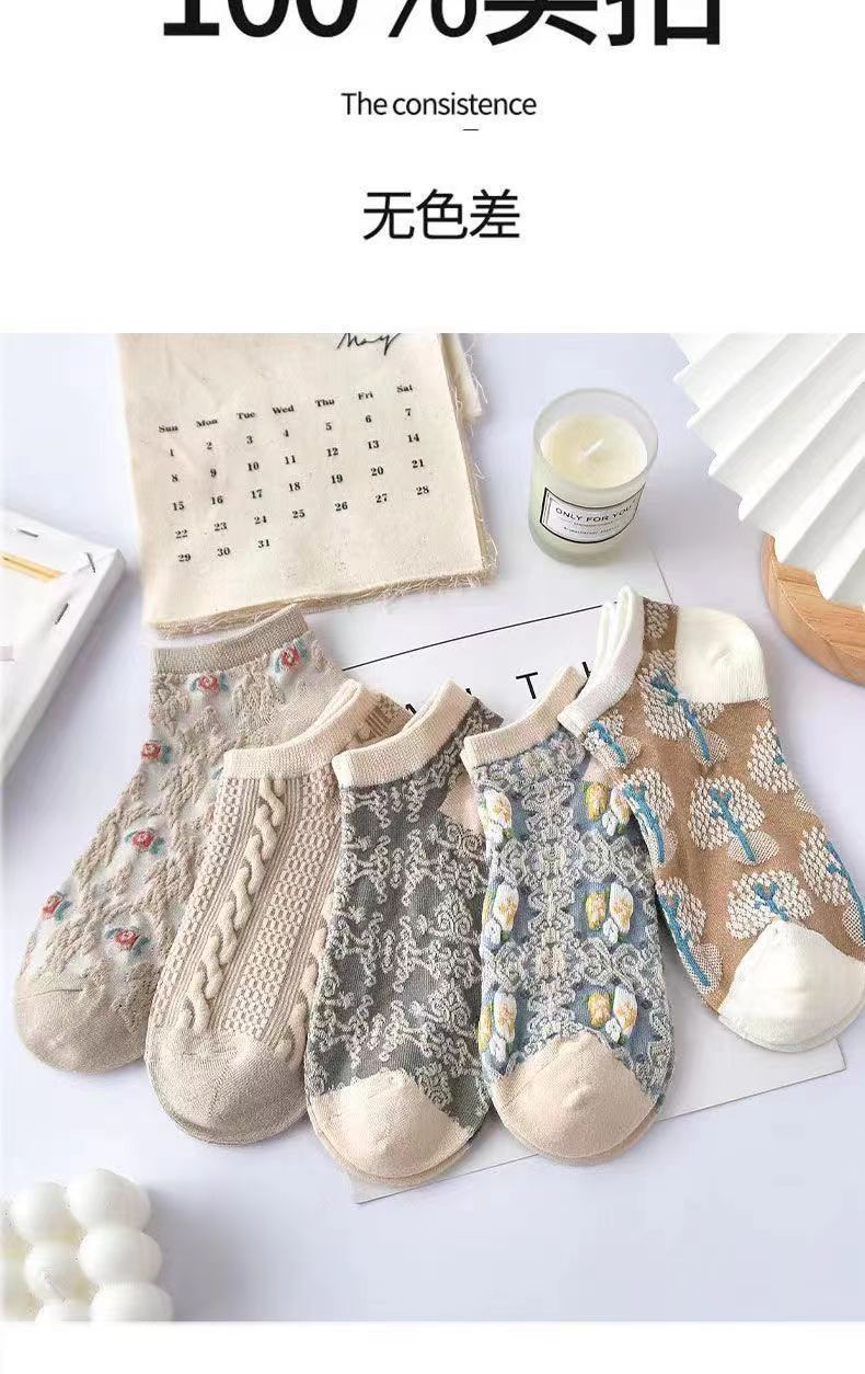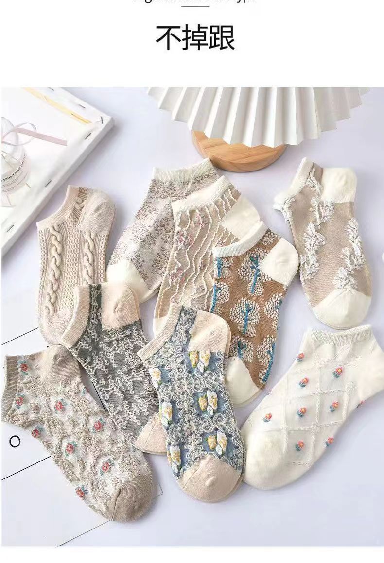 宮廷風ソックス春夏の薄手ins百合日系低組復古砕花文芸学生立体船靴下