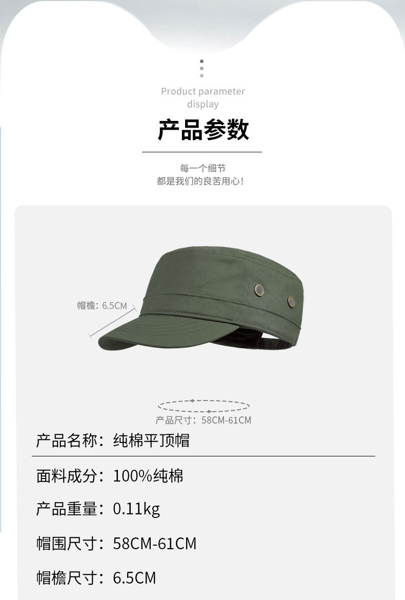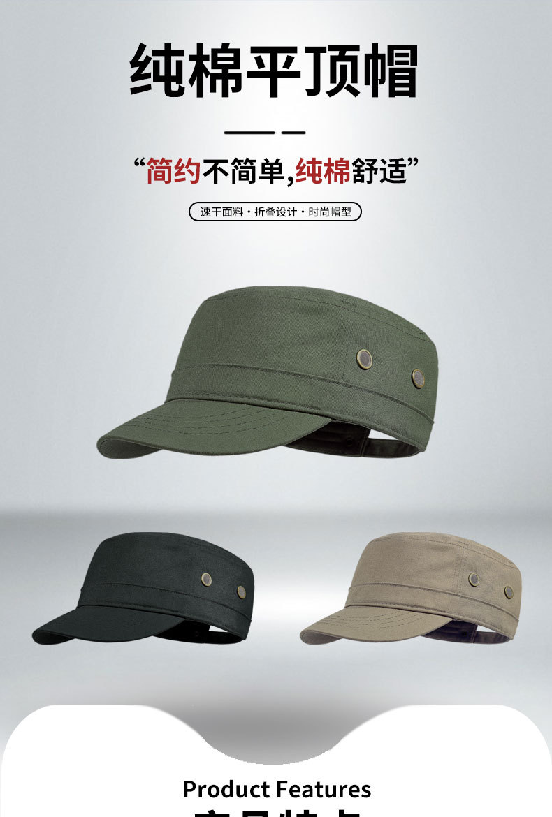 平顶帽男士后封口春秋新款潮流百搭休闲短檐中老年双层纯棉鸭舌帽