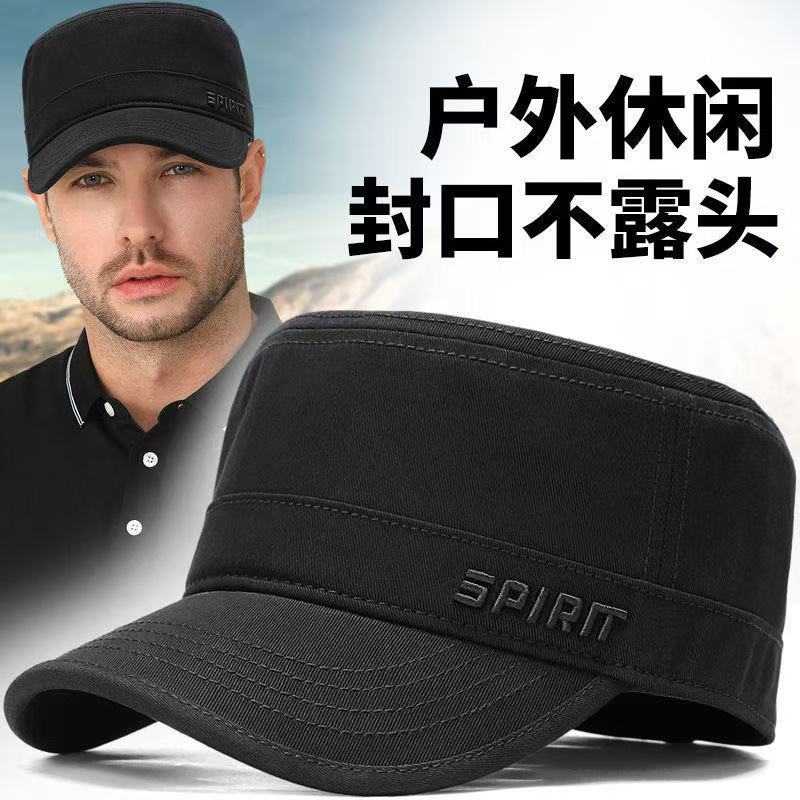 新款平顶帽子男士春秋户外休闲鸭舌帽简约遮阳帽中年男士帽子