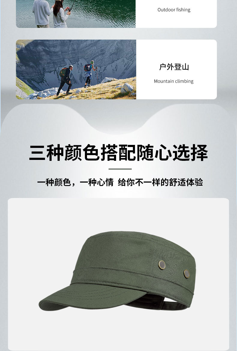 帽子男春秋韓国版通気性軍帽アウトドアシンプルカジュアル帽子四季日焼け止め日よけ帽子男女平頂帽