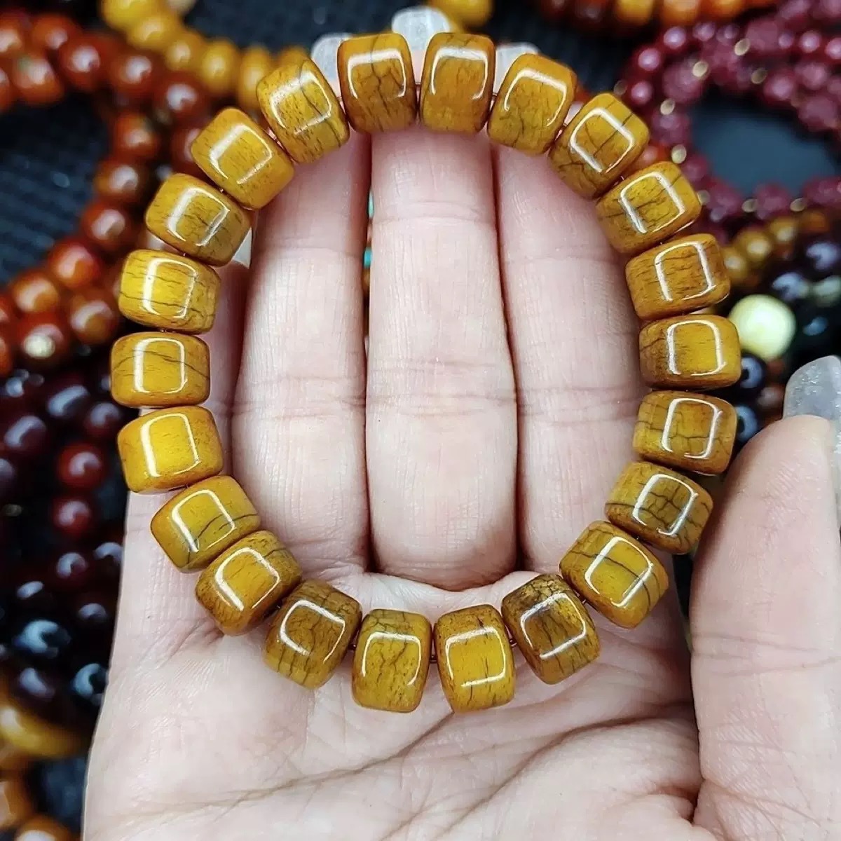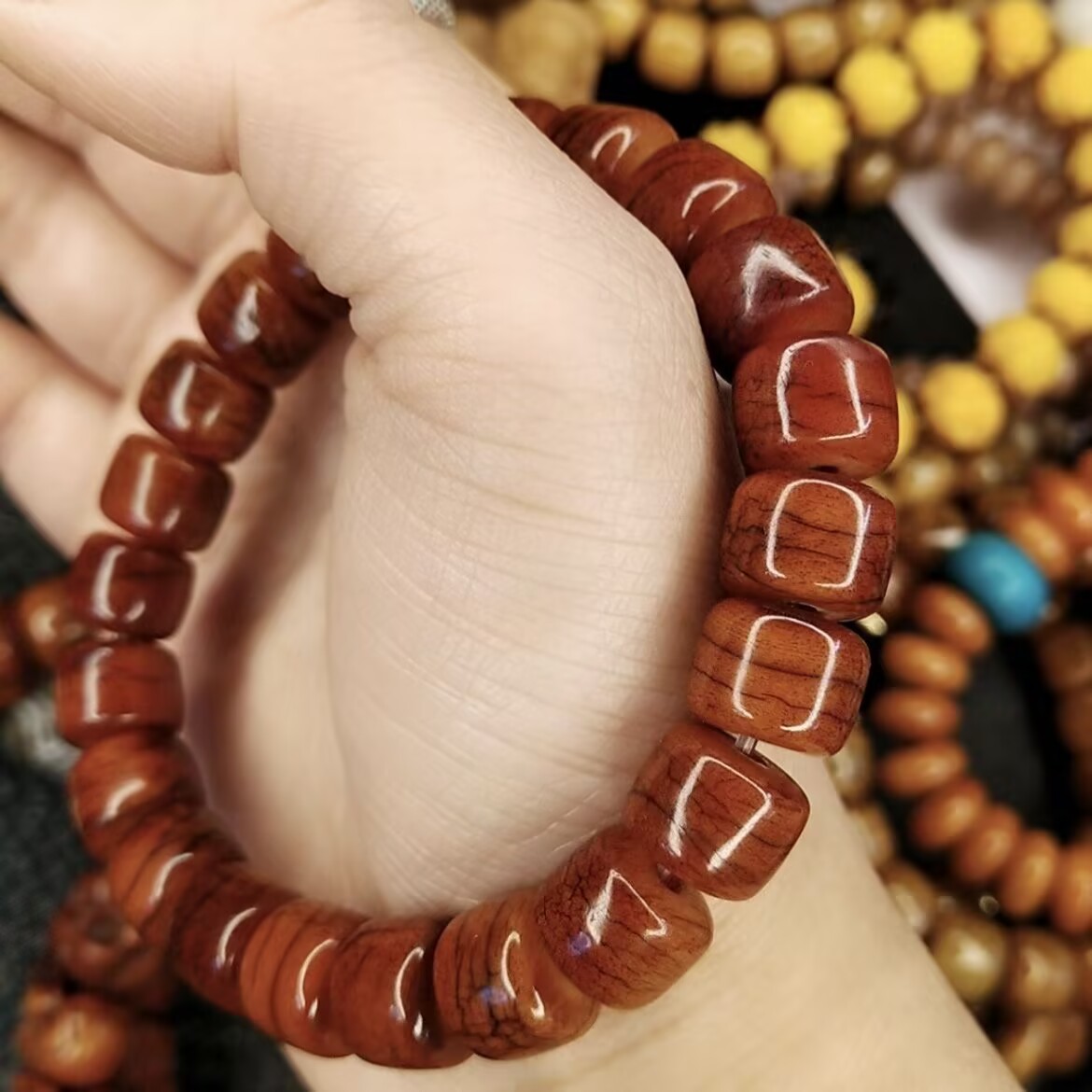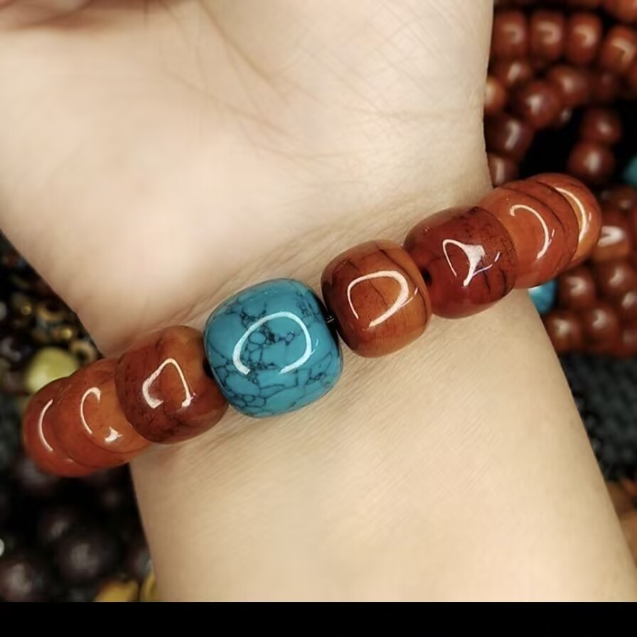 チベット高山フルブラッドレッドヤクホーンバレルビーズ仏ビーズブレスレットメンズハイスローヤクボーンロザリオブレスレット