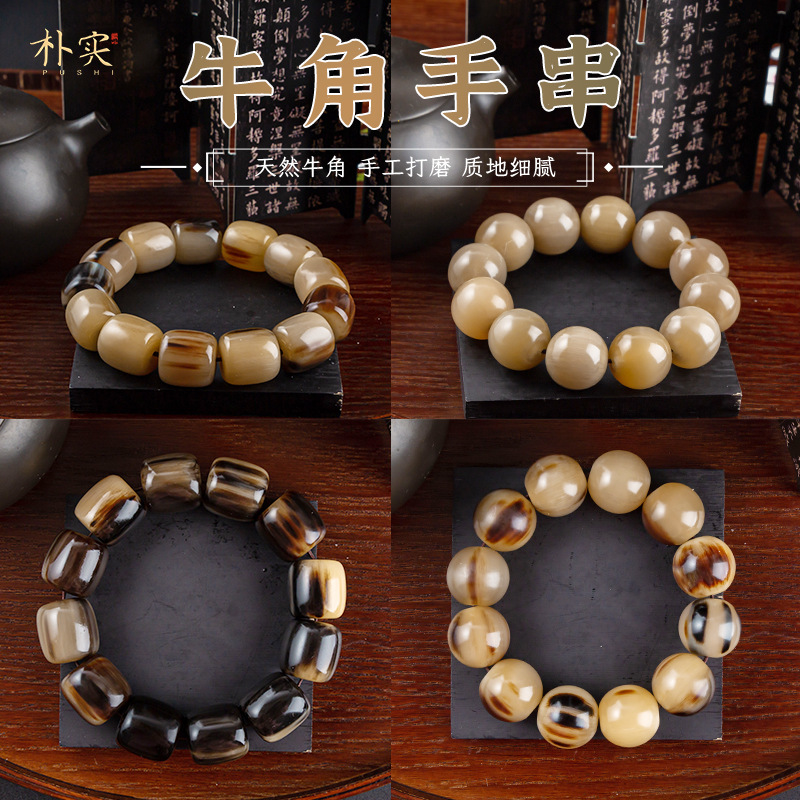 保真2025牛年天然ヤク角手串男チベット消耗牛仏珠男女項民族風手串ブレスレット