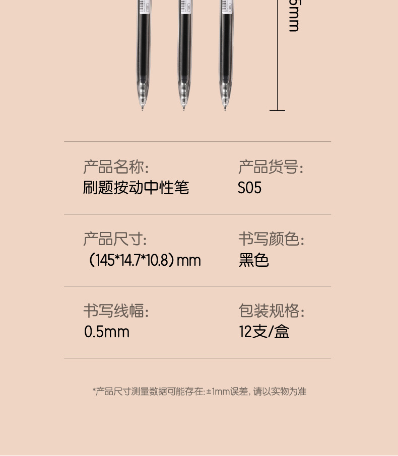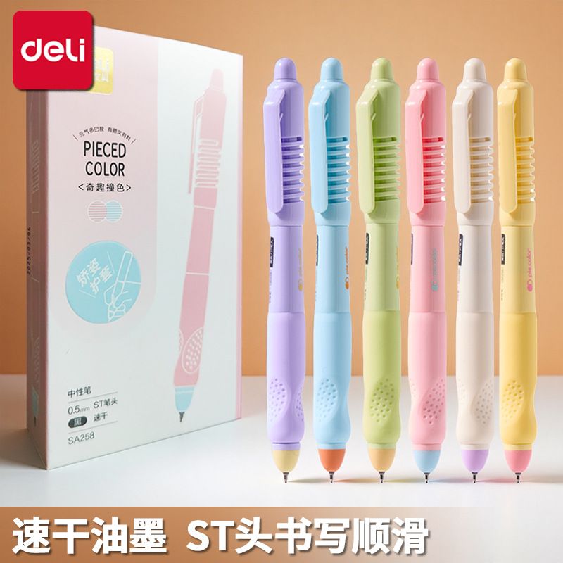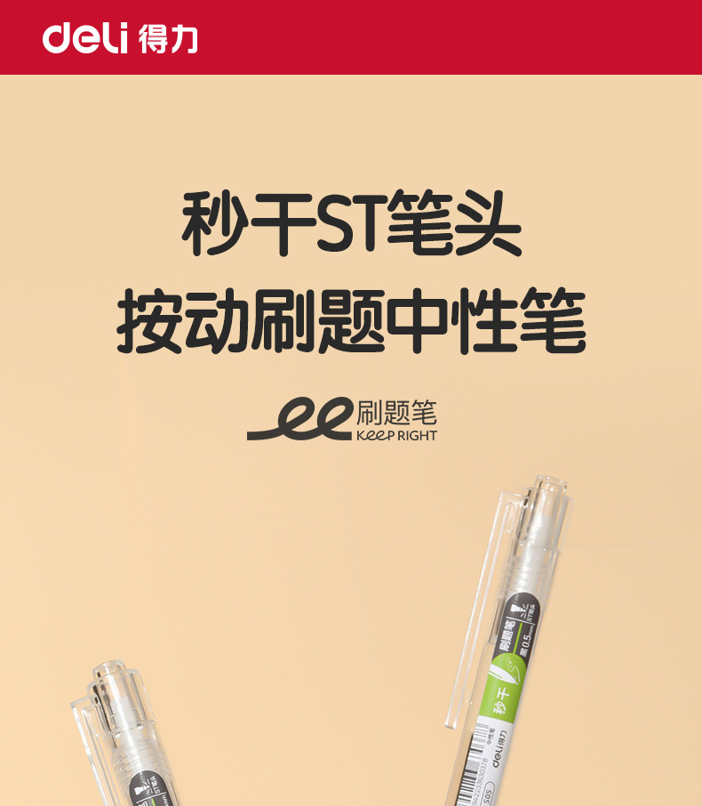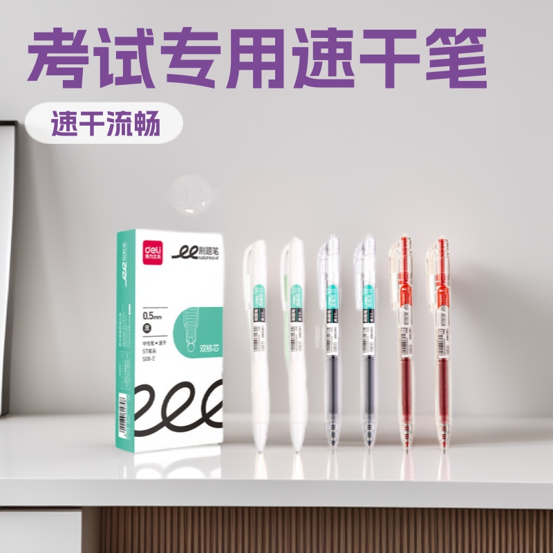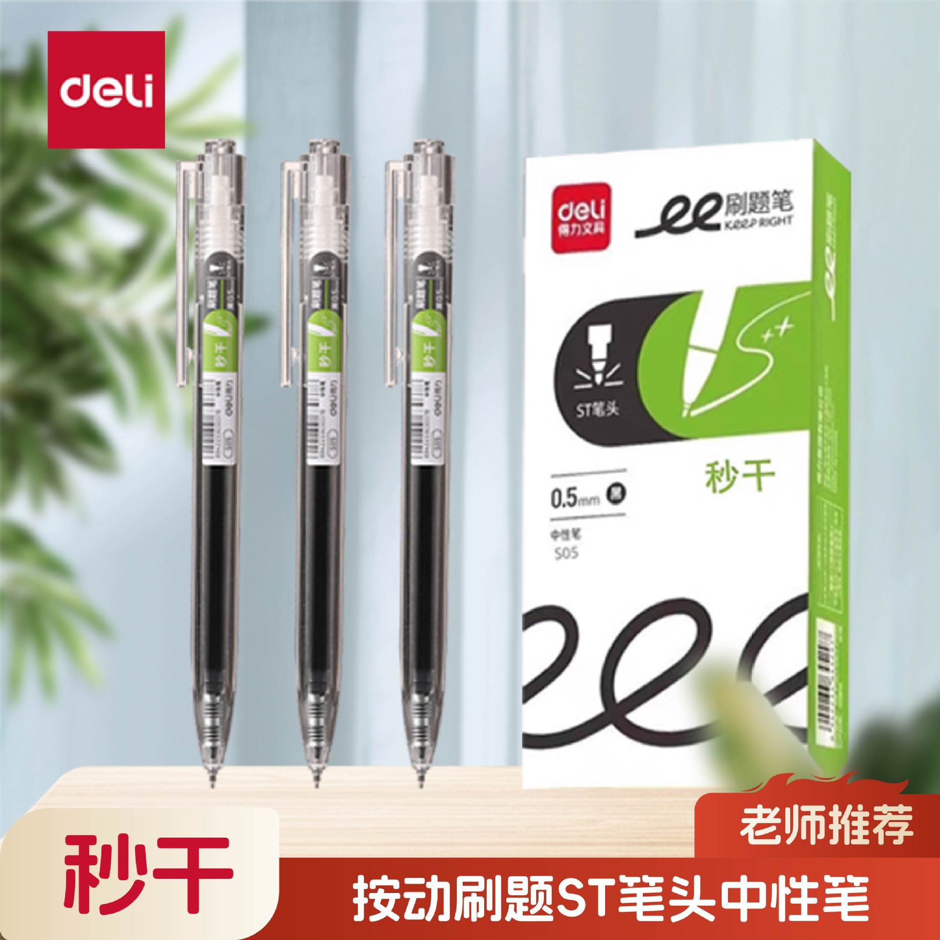 得力S05押し中性ペンST頭学生速乾ブラシ問題ペン高颜値事務用赤ペン黒水筆