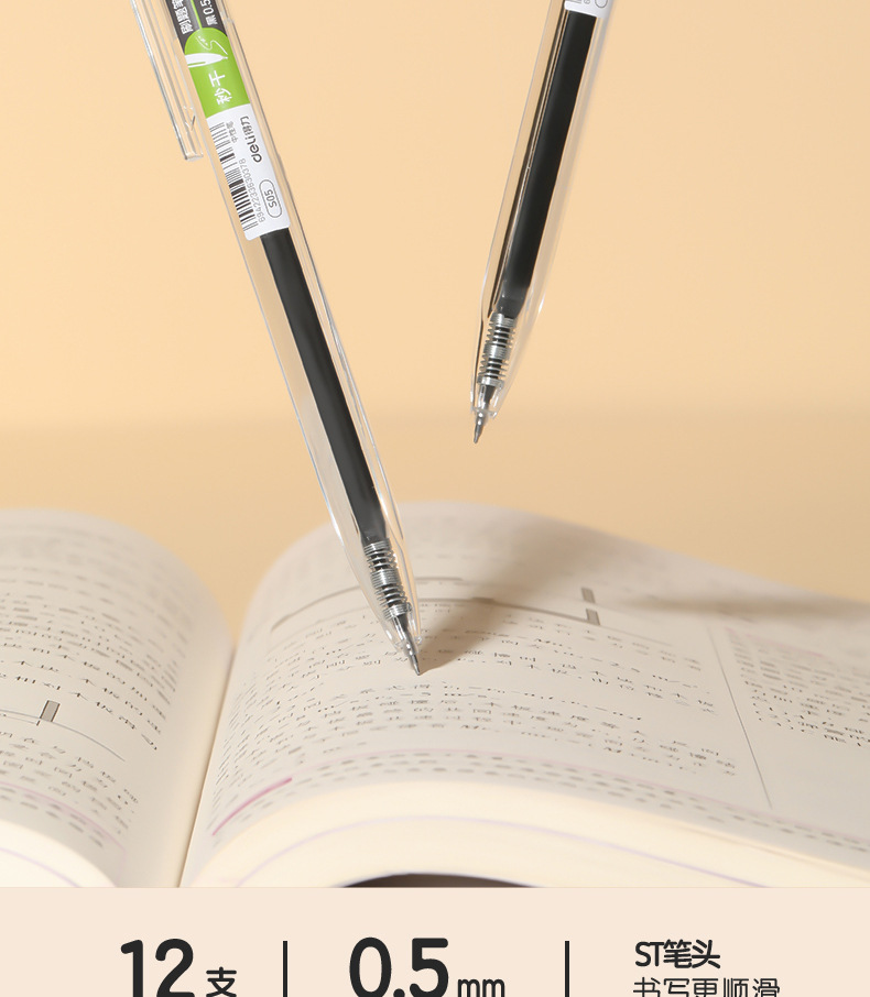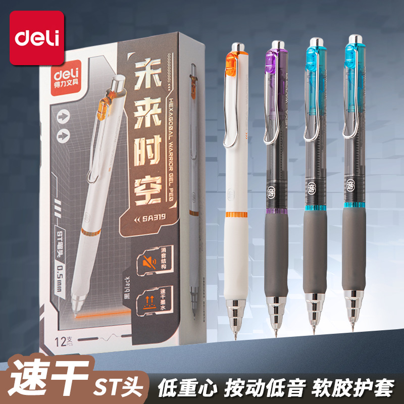 得力按动中性笔学生用高颜值书写笔0.5mm速干ST笔头创意黑色水笔