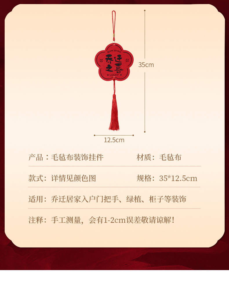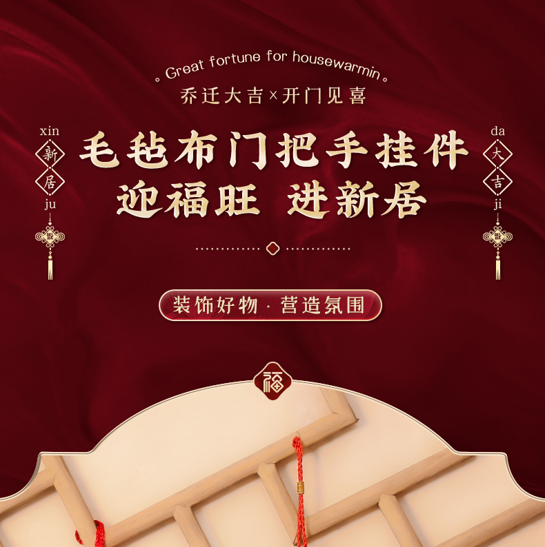 乔迁之喜毛毡挂件新居布置装饰入户门把手搬家入宅仪式感用品批货