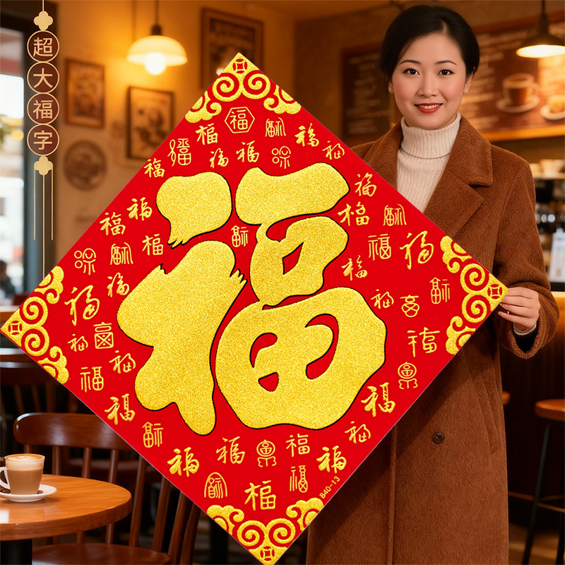 特大号福字门贴2026马年过年新款入户门新居装饰品背胶立体方福贴