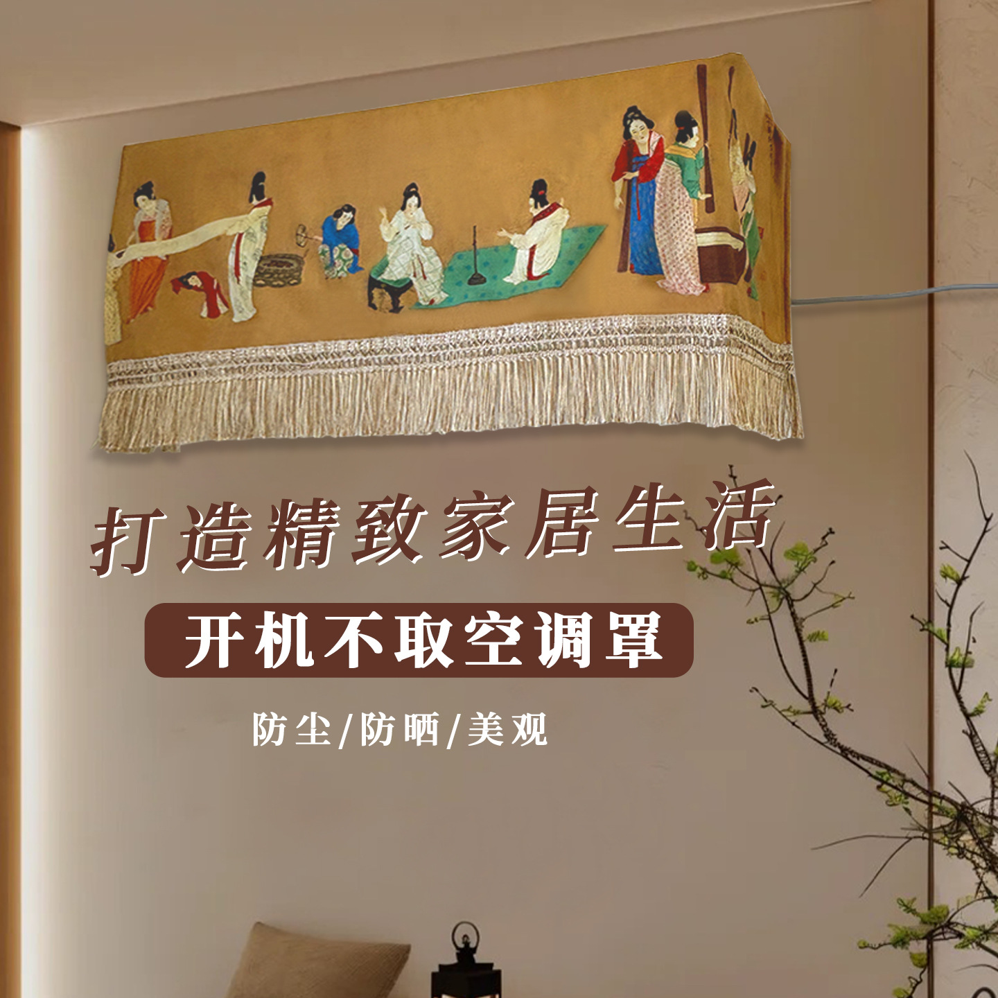 中古风开机不取空调罩新中式风国风遮丑挂机罩子全包防尘小红书