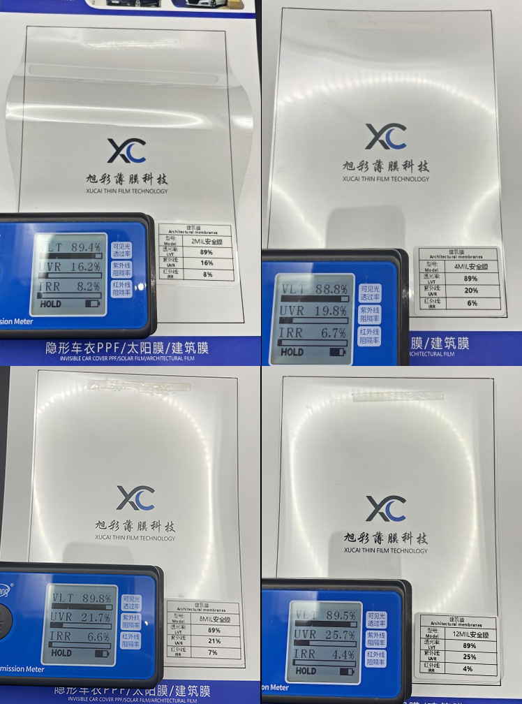 透明 2mil 安全フィルム、透明 4mil 安全フィルム、透明 8mil 安全フィルム、透明 12mil 安全フィルム、白不透明、白つや消し、黒