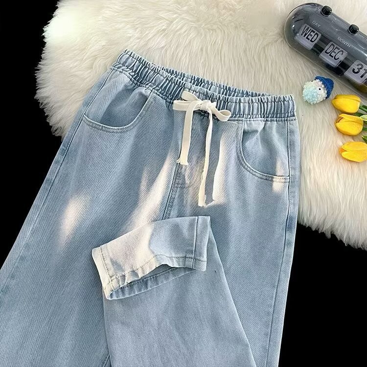TK跨境直播爆款热带夏季松紧腰牛仔裤男美式休闲裤宽松直筒长裤