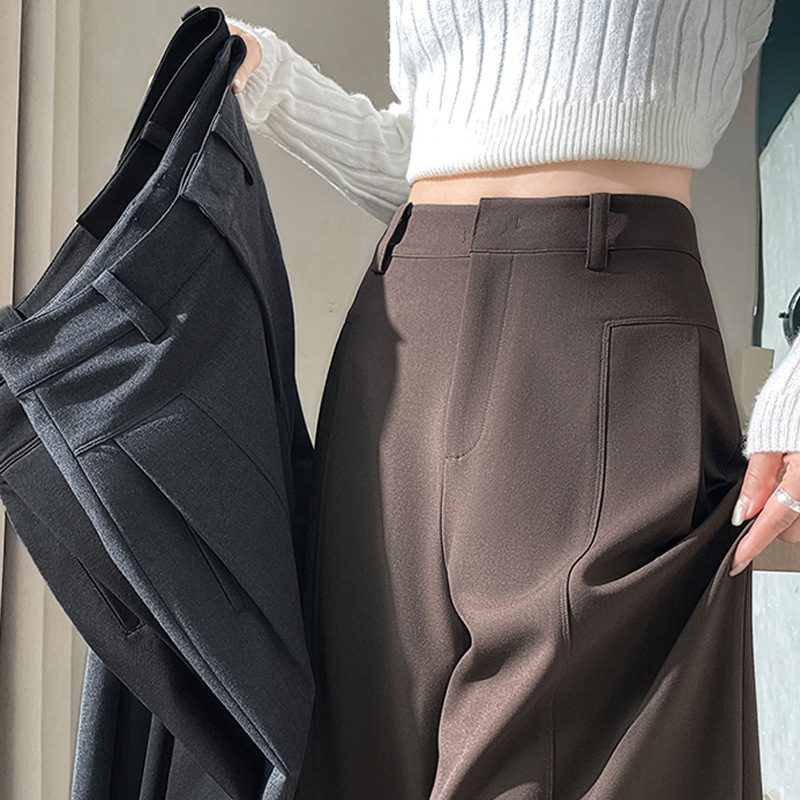 阔腿裤女高腰窄版西装裤加绒加厚百搭直筒裤休闲裤拖地裤2025新款