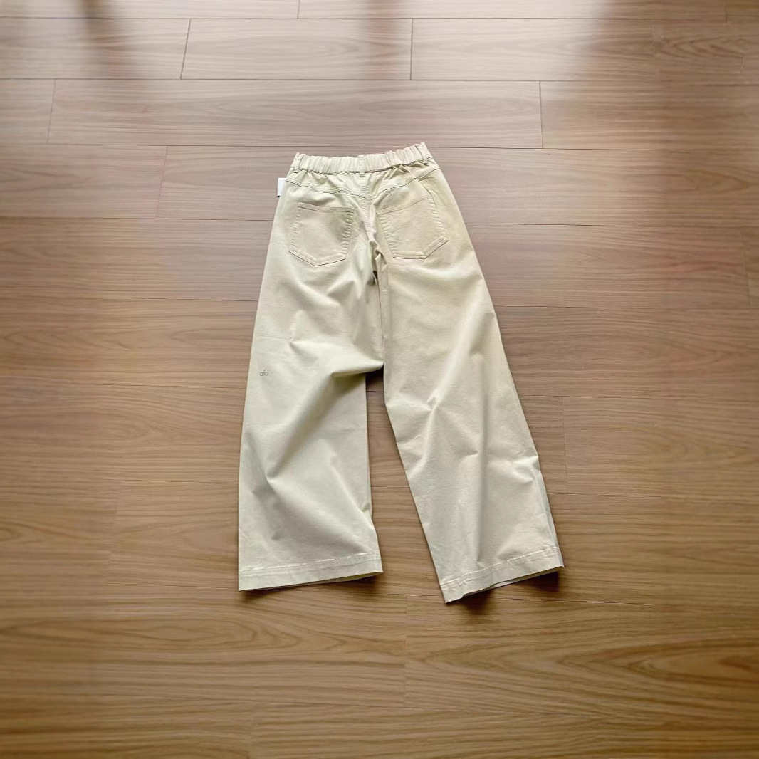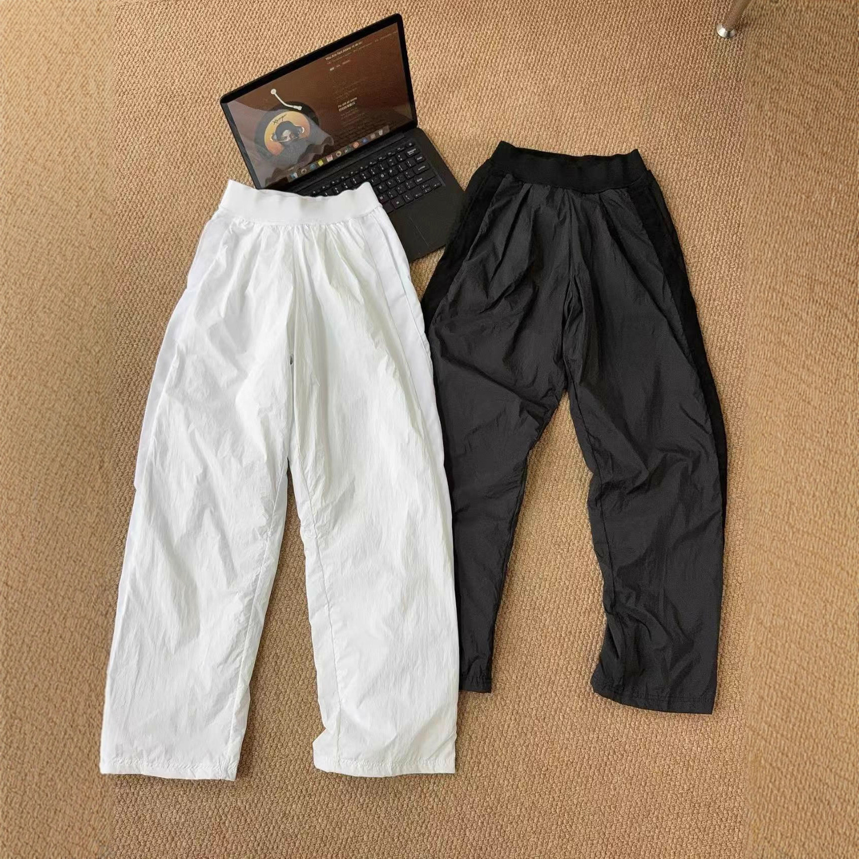 ルルと同じスタイルの2025年春新作レディースヨガ軽量版ハイウエストワイドレッグ多ポケット防水ワークパンツ