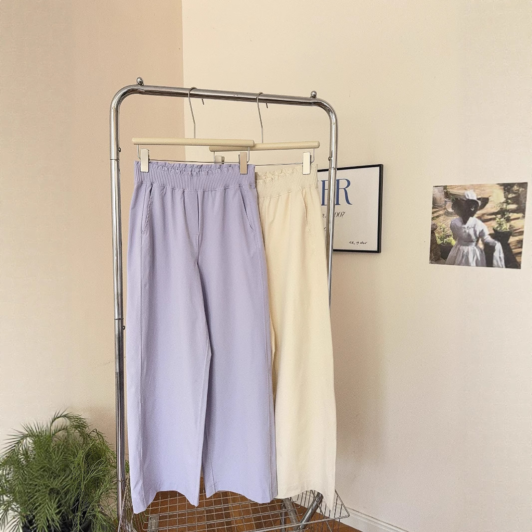 2025年秋 ルル風テニスパンツ レディース ハイウエスト ホワイト 日焼け防止 ワイドレッグパンツ 速乾 両面メッシュ ヨガウェア