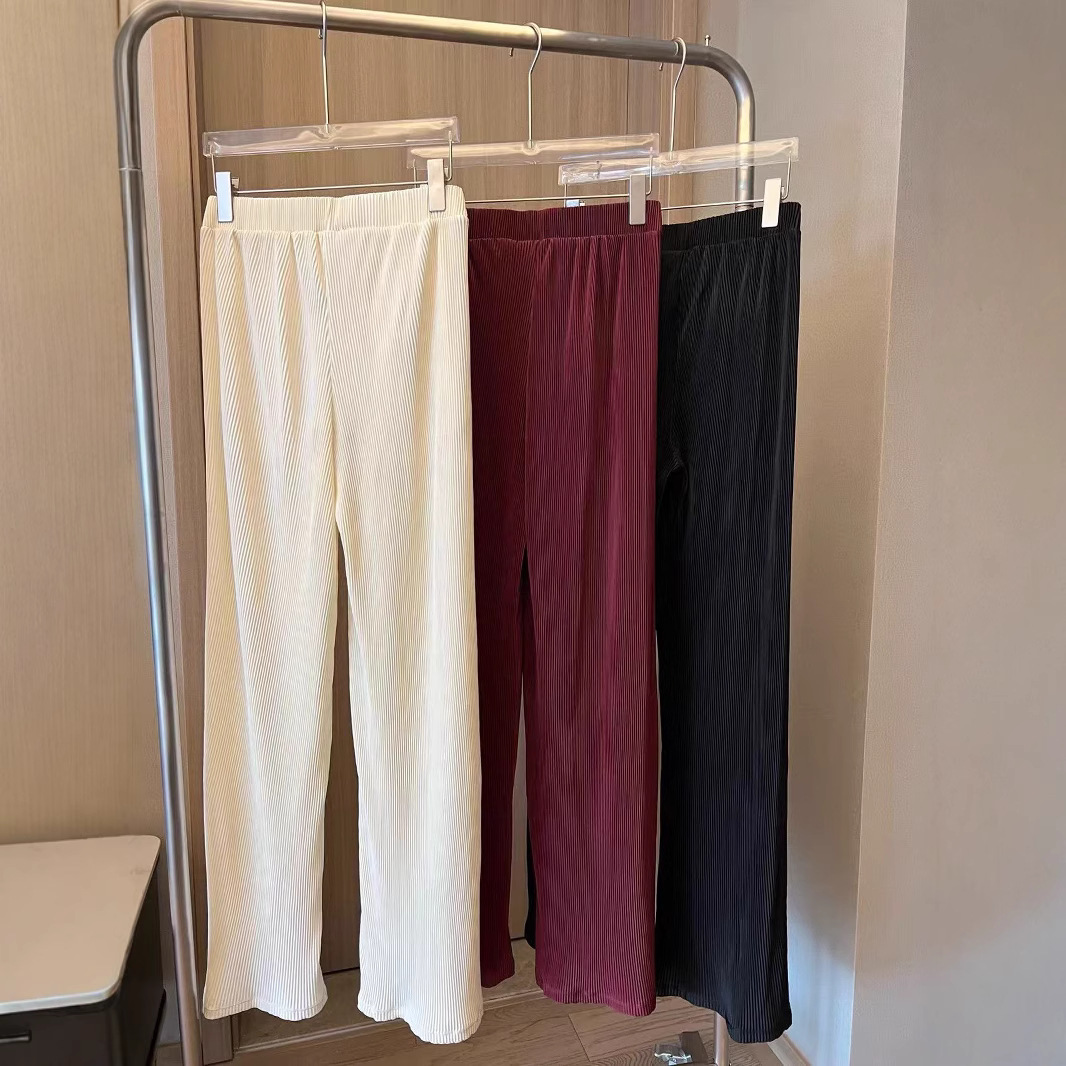 女性用ハイウエストマイクロプリーツストレートパンツ2025夏新作ドレープスーツパンツスリムパンツ職場通勤健康