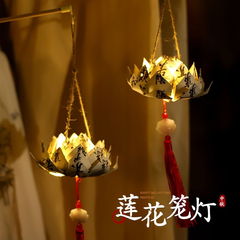 中秋节diy古风荷花手提灯材料包纸质发光莲花花灯送情侣闺蜜礼物